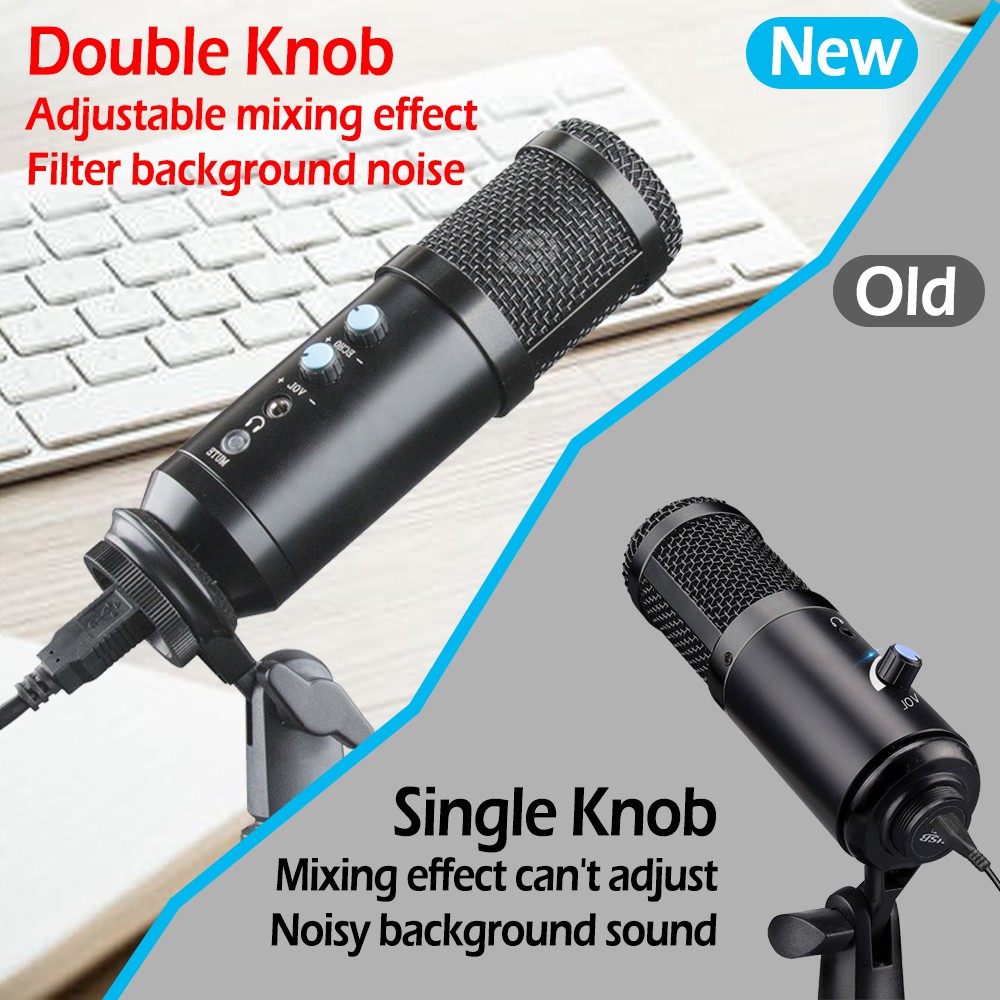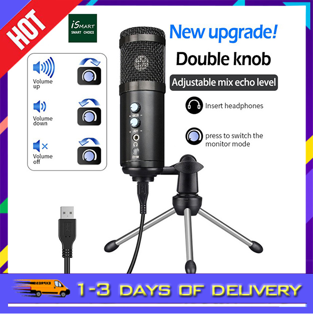 【COD】USB Condenser Microphone UD-900FX Recording Microphone USB Podcast Microphone Built-In Monitor Headphone Jack and Echo Effect with Butterfly Clip Holder Desktop Tripod Stand Use for PC Broadcasting Recording YouTube Live Streaming Ga+ - Price Shop Asia