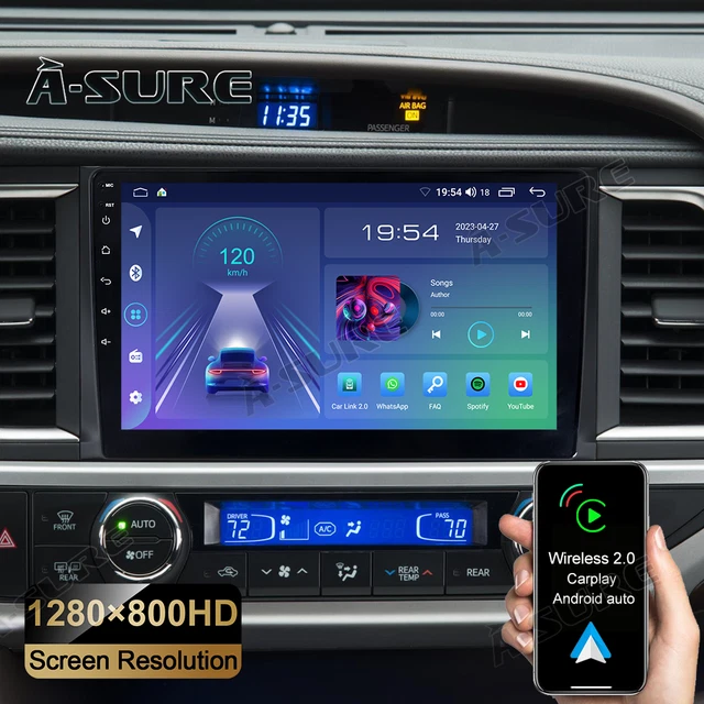 10” for Toyota Highlander 2014-2019 CarPlay Android 13 Stereo Radio GPS 2+32G. Wireless Apple Carplay. By simply speaking the command, the radio can quickly respond and perform the corresponding operation. 4+64GB Car Stereo Radio for Toyota Highlander 2014-2019. Toyota Highlander 2014-2019. 4+64GB Car Stereo Radio for Toyota Highlander 2014-2019 Fit for: Toyota Highlander 2014-2019 Compatible with OEM JBL amplifier Specifications: Operating System: Android 13 CPU: 4 Core RAM/ROM: 2GB/32GB Sound processor: 4X45W Radio Band: FM Factory Setting password: 3368 Screen Size: 10.1 inch Screen Resolution: 1280x800P Supports: Wifi & Hotspot GPS Navigation Mirrorlink Wireless Apple Carplay Wireless Android Auto Spilt Screen Steering Wheel Controls DSP Main Features: · Exclusive UI: Upgrade version with simple user interface, easy to operate. · RAM & ROM & CPU: Android 13 car stereo system, enjoy faster running with 2GB RAM and 32GB ROM and 4 core CPU for more apps installed. IPS touchscreen with a full-viewing angle can allow clear viewing even in any position, making the color richer and the display clearer. With the split-screen function, you can enjoy both views on the same screen at the same time. · Wireless Carplay & Android Auto: Simply pair your mobile phone with your car radio for seamless connectivity. With the voice assistant, drivers can easily control music playback, navigation, phone calls, and other functions. By simply speaking the command, the radio can quickly respond and perform the corresponding operation. This intelligent interaction not only improves driving safety but also gives drivers a more convenient driving experience. · Support Steering Wheel Controls: Steering wheel controls allow the driver to easily operate the vehicle’s multimedia system, telephone, navigation, and other functions via buttons on the steering wheel or the touch screen while driving without having to distract their attention from touching other locations. · Support Back up Camera: The rear view feature e nables real-time monitoring by providing a wider and clearer field of view, reducing blind spots, and lowering wind resistance. · DSP Sound & FM/RDS: DSP sound technology dramatically improves audio quality and processing flexibility through digital processing, providing a more premium and customized listening experience, whether it’s in music appreciation or movie watching. FM/RDS channels, a variety of channels to choose from. Clearer sound and a wide audio range. Stronger resistance to interference and cleaner sound. · GPS navigation : Our radio comes with Google maps, the navigation can also work offline, the offline navigation software is not included, you can download it from Google Play store. · USB cables : Support external USB flash drive to upload music, photos and files. Supports Boot Screen Logo customization. · Support Mirror Link: Android player can mirror link with Android phone by USB cable ,IOS phone link by WIFI (Not fit for All phone). · Bluetooth function : Built-in bluetooth module, support bluetooth phone connect, handsfree for calling or bluetooth music play.