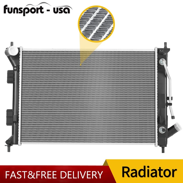 13333 Radiator for Hyundai 11-13 Elantra / 13-15 Elantra GT / 2014 Kia Forte. For 2014 Kia Forte. For 2014 Kia Forte Koup2.0L Only (NOT Fit 1.6L). For 2011 – 2012 Hyundai Elantra Sedan 1.8L Only(NOT Fit 2.0L). For 2013 Hyundai Elantra Sedan. For 2013 Hyundai Elantra Coupe. For 2013 – 2015 Hyundai Elantra GT Hatchback. Document 1. The radiator cap that has not passed the test can’t release the pressure when it reaches the pressure value. 2. The damaged thermostat is unable to carry out a large cycle, resulting in a continuous increase in the radiator pressure. 3. The radiator fan does not turn, resulting in high temperature in the water tank. 4. Drain the air from the cooling system. Refer to the user manual or repair manual. 5. Please refer to owner’s manual to add coolant. 6. Do not open the hood until the steam has subsided. The engine compartment may be very hot, causing serious injuries such as burns. 7. Please stop the vehicle immediately, when “ENGINE OVERHEAT/High Temperature” shows on the dashboard or steam comes out from under the hood. 8. Keep hands and clothing (especially a tie, a scarf) away from the fans and belts. Failure to do so may cause the hands or clothing to be caught, resulting in serious injuries. 9. Do not loosen the radiator cap while the engine and radiator are hot. Serious injuries, such as burns, may result from hot coolant and steam released under pressure. FEATURES: 1. The Core was made of high quality Aluminum . Effective Heat Dissipation. 2. Good sealing. All of the new radiators will be inspected before selling (Including 100% leaking test). 3. Radiator is really easy to get damaged during delivery. We have upgraded our package design to avoid this kind of problem. DETAILS: Core Material: Aluminum Tank Material: Plastic Core Dimension: 21-5/8 In. x 15-5/8 In. Core Thickness: 5/8 In. Inlet Diameter: 1-3/8 In. Outlet Diameter: 1-5/16 I n. Row: 1 Oil Cooler: Yes Radiator Cap: NO Interchange Part Number: CU13333, 13333 , DPI 13333 , A13333 , RAD13333 , Q13333 , 8013333 , 253103X101, HY3010175, 13374, 13385 Color: Black and Silver FITMENT: Outlet Connection: Upward Side For 2011 – 2012 Hyundai Elantra Sedan 1.8L Only (NOT Fit 2.0L) For 2013 Hyundai Elantra Sedan For 2013 Hyundai Elantra Coupe For 2013 – 2015 Hyundai Elantra GT Hatchback For 2014 Kia Forte For 2014 Kia Forte Koup 2.0L Only (NOT Fit 1.6L) For 2012 – 2013 Kia Soul 2.0L Only (NOT Fit 1.6L) WE ACCEPT THESE PAYMENT METHODS ( 10% sales tax will be applied for orders shipped to Washington state by state law ) 30 Days easy returns satisfaction grantee. Items to be returned must be in original factory condition. Please enclose a note about item number and order id, your eBay ID and the reason of return.