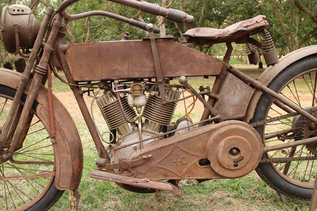 1915 Harley-Davidson Other. 1915 Harley Davidson Model 11 F This is an original paint (rust?) 1915 Harley Davidson Model 11 F. This motorcycle is the best of the Harley Davidson line up in pre 16 motorcycles! The Model 11 F is a 3 speed Twin cylinder motorcycle with double acting brake expanding band rear brake assembly. The 3 speed transmission locks into gear and also assists with breaking. The engine is a 61 cubic inch, 989 cc, 11 hp model with a first year 1 inch crank pin for strength. (605) 484-8576 (605) 484-8576 Visit eBay Store 1 2 3 4 5 6 7 8 9 10 11 12 13 14 15 16 17 18 19 20 21 22 23 24 25 26 27 28 29 30 31 32 33 34 35 36 of 36 Full size photos Full size photos 1915 Harley Davidson Model 11F Twin Cylinder Motorcycle Stock #: 24-1097 Exterior Color: grey Fuel Type: Gasoline Engine: 1000cc Mileage: 999 1915 Harley Davidson Model 11 F This is an original paint (rust?) 1915 Harley Davidson Model 11 F. This motorcycle is the best of the Harley Davidson line up in pre 16 motorcycles! The Model 11 F is a 3 speed Twin cylinder motorcycle with double acting brake expanding band rear brake assembly. The 3 speed transmission locks into gear and also assists with breaking. The engine is a 61 cubic inch, 989 cc, 11 hp model with a first year 1 inch crank pin for strength. This was a solid motorcycle from the get-go! This particular motorcycle was found as a complete motorcycle although the engine was apart. Time has been good to this bike and now time has altered the collectability of the bike. The restoration started a long time ago at a slow pace and the owner decided not to restore but to set it up as an unrestored motorcycle because that is more difficult to find. The current status of this Harley Davidson is that it is mechanically, professionally restored, and running. Needs more tlc to make it reliable and road worthy. The receipts validate a correct rebuild of the engine as a collaborative effort by known HD builders including final runup and tune buy Matt Walksler in 2019. The original patina of the sheet metal allows for a choice of running as is or going for the complete restoration. What do you want to do with it or do you think should be done? This bike was started in late 2019 and the engine runs great, check the video. Mileage: Zero on the mechanical rebuild Paint: Paint is original patina rusted paint. It could use an oil bath to feed it and help it stop rusting. Sheet Metal: Seems all original and in great condition. Front fender is a 1916 Chrome: None some nickel remains. Mechanical: The engine has been cleaned, assorted, and rebuilt with quality parts. It is a running assembly, and does, see the video. A bit out of place in the chassis because of the nickel work done but that is just a story maker! Receipts on the build go with the bike. It is a quality build. The engine was restored with a full bike restoration in mind so it was correctly nickled. The engine looks a bit out of place in the frame, but road work will smooth that out. Wheels and Tires: Rims: Original steel clincher rims with the original spokes and nipples. New Coker tires and tubes assembled and in place. Title: No current title and numbers search out clean. CA Title available for a fee. Engine # 6615K Frame # N/A Valuation: NADA: Motorcycles/1915/Harley-Davidson/11F-TWIN-60-34ci/Values Excellent $107,965 Very Good $56,490 Good $32,405 This machines current status would place it in the Very good status or above Hagerty Value Guides: apps/valuationtools/1915-Harley~Davidson-11FTwin • #1 Concours $175,000 • #2 Excellent $150,000 • #3 Good $125,000 • #4 Fair $100,000 This machine’s current status would be rated at #4 Fair or less. Mecum Auctions: Mecum Results 1915 Harley Davidson Model 11 F The same bike shown as sold in 2019 and 2021 at $110,000 Concourse. Monterey 2021 no sale at $65 high bid on a bike with Reserve at $85,000 Accessories: All build receipts go with the bike. There is also an extra engine and transmission available that is priced separately. There is also a complete story of the history of the bike available. Vehicle Description 1915 Harley Davidson Model 11 F This is an original paint (rust?) 1915 Harley Davidson Model 11 F. This motorcycle is the best of the Harley Davidson line up in pre 16 motorcycles! The Model 11 F is a 3 speed Twin cylinder motorcycle with double acting brake expanding band rear brake assembly. The 3 speed transmission locks into gear and also assists with breaking. The engine is a 61 cubic inch, 989 cc, 11 hp model with a first year 1 inch crank pin for strength. This was a solid motorcycle from the get-go! This particular motorcycle was found as a complete motorcycle although the engine was apart. Time has been good to this bike and now time has altered the collectability of the bike. The restoration started a long time ago at a slow pace and the owner decided not to restore but to set it up as an unrestored motorcycle because that is more difficult to find. The current status of this Harley Davidson is that it is mechanically, professionally restored, and running. Needs more tlc to make it reliable and road worthy. The receipts validate a correct rebuild of the engine as a collaborative effort by known HD builders including final runup and tune buy Matt Walksler in 2019. The original patina of the sheet metal allows for a choice of running as is or going for the complete restoration. What do you want to do with it or do you think should be done? This bike was started in late 2019 and the engine runs great, check the video. Mileage: Zero on the mechanical rebuild Paint: Paint is original patina rusted paint. It could use an oil bath to feed it and help it stop rusting. Sheet Metal: Seems all original and in great condition. Front fender is a 1916 Chrome: None some nickel remains. Mechanical: The engine has been cleaned, assorted, and rebuilt with quality parts. It is a running assembly, and does, see the video. A bit out of place in the chassis because 