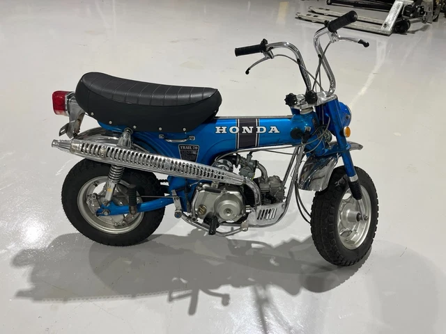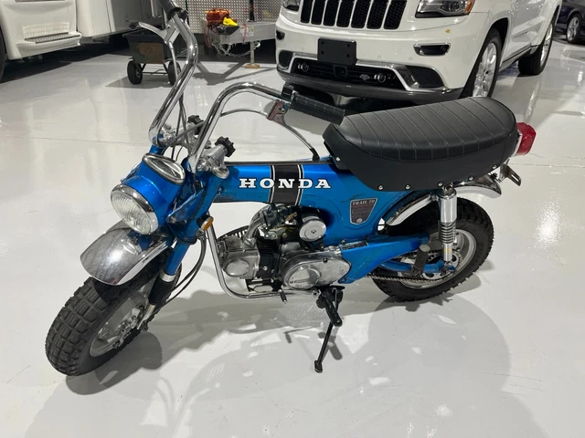 1971 Honda Trail 70 CT70. I purchased this bike in September 2023. Original Candy Saphire Blue Paint. I have replaced the Handlebars, the Brake Handles, the Handle Grips, the Throttle control, the Wire Harness, the Battery (Dry Cell), the Seat, and rebuilt the Front Forks and the Brakes. The engine and transmission were rebuilt by the previous owner. I purchased this bike in September 2023. Original Candy Saphire Blue Paint. I have replaced the Handlebars, the Brake Handles, the Handle Grips, the Throttle control, the Wire Harness, the Battery (Dry Cell), the Seat, and rebuilt the Front Forks and the Brakes. The engine and transmission were rebuilt by the previous owner.