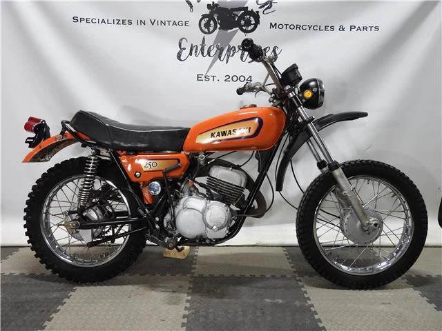1971 Kawasaki F8 250 Bison 2776. Vehicle Original VIN : F803934 For sale is a 1971 Kawasaki F8 250 Bison Enduro. Frame Number F8-03934, Engine F8E-03993. Bike is showing 5470 original miles. Bike starts up and runs and rides ok. Clutch is sticky, may need new or just ridden. Bike will need a new throttle/choke housing for it is broke so cables are loose and not secured. Lights will need some work. Carburetor leaks a little. Overall a good bike just needs some things sorted out before riding. Exhaust header has small hole in front. Gas tank has dent in back by seat. Bike is sold with a clear title. (248) 909-2000 (248) 909-2000 Visit eBay Store 1 2 3 4 5 6 7 8 9 10 11 12 13 14 15 16 17 18 19 20 21 22 23 24 25 26 27 28 29 30 31 32 33 of 33 Full size photos Full size photos 1971 Kawasaki F8 250 Bison 2776 Stock #: 2776 Exterior Color: Orange Mileage: 5,470 Vehicle Original VIN : F803934 For sale is a 1971 Kawasaki F8 250 Bison Enduro. Frame Number F8-03934, Engine F8E-03993. Bike is showing 5470 original miles. Bike starts up and runs and rides ok. Clutch is sticky, may need new or just ridden. Bike will need a new throttle/choke housing for it is broke so cables are loose and not secured. Lights will need some work. Carburetor leaks a little. Overall a good bike just needs some things sorted out before riding. Exhaust header has small hole in front. Gas tank has dent in back by seat. Bike is sold with a clear title. Vehicle Description Vehicle Original VIN : F803934 For sale is a 1971 Kawasaki F8 250 Bison Enduro. Frame Number F8-03934, Engine F8E-03993. Bike is showing 5470 original miles. Bike starts up and runs and rides ok. Clutch is sticky, may need new or just ridden. Bike will need a new throttle/choke housing for it is broke so cables are loose and not secured. Lights will need some work. Carburetor leaks a little. Overall a good bike just needs some things sorted out before riding. Exhaust header has small hole in front. Gas tank has dent in back by seat. Bike is sold with a clear title. About Flashback Enterprises Flashback Enterprises Inc. is a registered motorcycle dealer specializing in buying and selling vintage motorcyles and parts. Please Like us on Facebook to see new inventory Coming in https://www.facebook.com/FlashbackEnterprisesinc Contact us for more details (248) 909-2000 (248) 909-2000 Terms and Conditions Payment Options We accept the following payment methods: – Cashier’s Check/money order Vehicle Pickup & Shipping All shipping charges are buyer’s responsibility. Finance, Warranty, Shipping question? Call the dealer at (248) 909-2000 General Terms Notice to Bidders: The vehicles we list for sale at eBay are also for sale at our retail location. Please contact us to confirm vehicle availability. We reserve the right to end an auction early. Deposit: We require a non-refundable $500 deposit within 48 hours of winning the auction. Please call to make arrangements for payment. We accept the following forms of payment: Cash in person, certified funds, institutional financing. All sales transactions must be completed within 7 calendar days of auction close. Prices are subject to change without notice. Although every effort is made to present accurate and reliable vehicle information, use of this information is voluntary, and should only be deemed reliable after an independent review of its accuracy, completeness, and timeliness. It is the sole responsibility of the customer to verify the existence of options, accessories and the vehicle condition before time of sale. Any and all differences must be addressed prior to time of sale. No expressed or implied warranties, including the availability or condition of the equipment listed is made. EPA mileage estimates are for comparison purposes only. Actual mileage may vary depending on driving conditions, driving habits, and vehicle maintenance. Paypal Payment for Deposit Only. We Accept Postal Money orders, Zelle, Cash on Pick Up or Wire Transfers for Balance that is due in 7 Days of End of Auction or unless other arranges have been made. Fees and Taxes State or local taxes, title, license fee, processing fees, registration fee, dealer documentary fee, finance charges, emission testing fees, and compliance fees are additional to the advertised price.