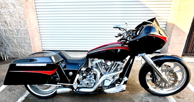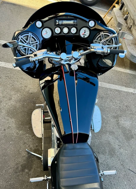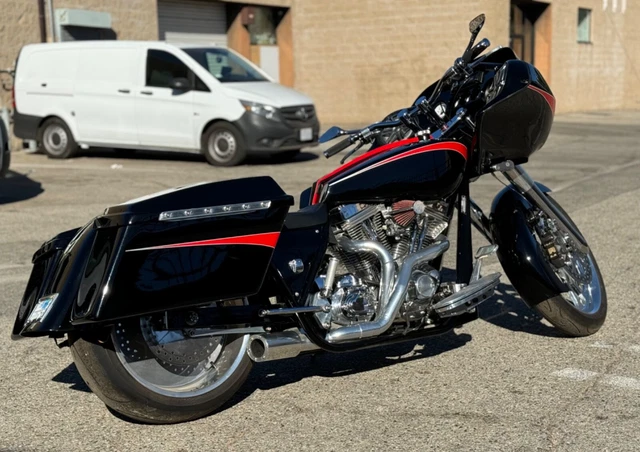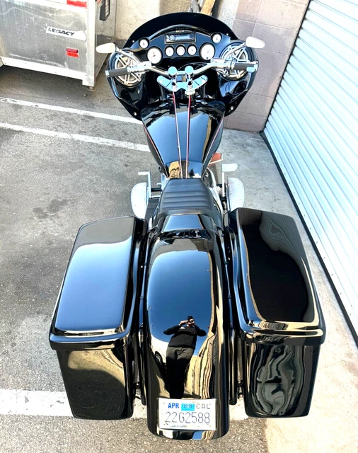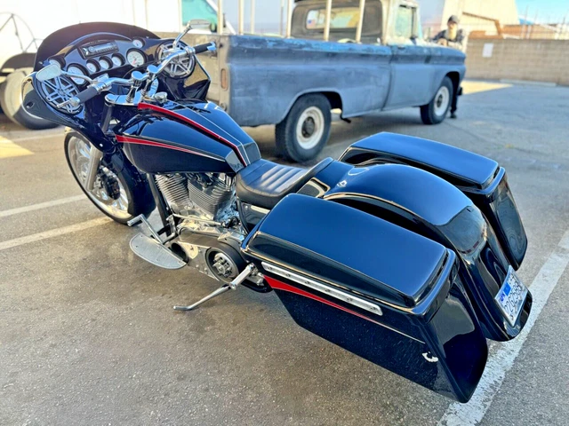 2007 Harley-Davidson Touring. MORE VIDEOS AVAILABLE BY REQUEST. CONDITION: One-of-a-kind custom bagger, in nearly immaculate condition. & much more. Sony head unit w/ CD player & AUX input. Rockford-Fosgate amp. JL Audio 8″ speakers. Custom Bagger – Road Glide 127″ Ultima / Stretched 2007 FLTR frame / 6-Speed / 2 40 rear tire / Custom Body + Paint Purchased at 2015 Colorado Motorcycle Expo from a private builder. The bike was built in 2007/2008 and the motor professionally re-built in 2015. Clean California Title – The bike is titled as a 2015 Special Construction Registered as NON-OP in California since 2020. Owner developed health problems and could not ride. The bike has been maintained by us at Outlaw Cycle Products since then. You will not need to pay back registration with the non-op, only the current year fees. We have installed a brand new high-cca battery and tuned the bike. Stretched 2007 Road Glide FLTR frame 127″ Ultima motor – Professionally rebuilt in 2015 by Ultima Rebuild Program with 2,021 miles 6-Speed Harley-Davidson transmission in stock HD 5-Speed case BDL 3″ open belt drive Brembo dual-disc front/rear calipers w/ 13″ rotors Mikuni 48mm carburetor Sumax saddlebags w/ built-in flush / invisible LED turn signals American Suspension raked billet wide-glide front end Custom 2-into-1 exhaust Custom drop-seat Custom tank, body work & paint job Custom floorboards w/ sight-glass master cylinder / matching fold up passenger pegs American Made billet wheels – 21″ x 3.5 front / 18″ x 8.5 rear 13″ matching front dual stainless brake rotors 18×8.5 solid rear wheel w 240 tire Continental tires (120/70-21 front, 240/40-18 rear) Progressive Suspension rear shocks JL Audio 8″ speakers Rockford-Fosgate amp Sony head unit w/ CD player & AUX input & much more CONDITION: One-of-a-kind custom bagger, in nearly immaculate condition. The only damage to mention is a paint chip on left saddlebag (see last photo) and some creases in the air filter. Brand new high-CCA battery and tune-up. CONTACT US WITH ANY QUESTIONS OR TO SCHEDULE AN APPOINTMENT MORE VIDEOS AVAILABLE BY REQUEST @outlawcycleproducts