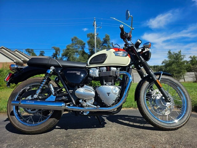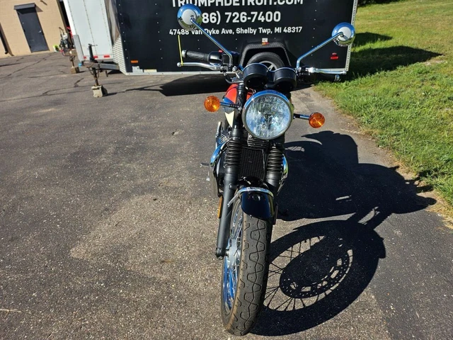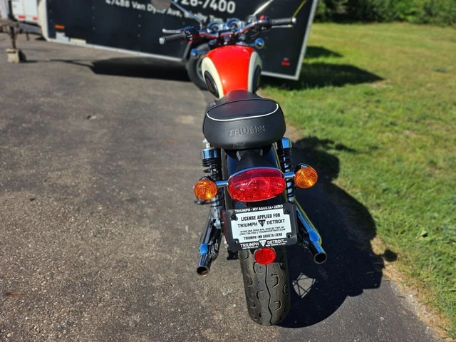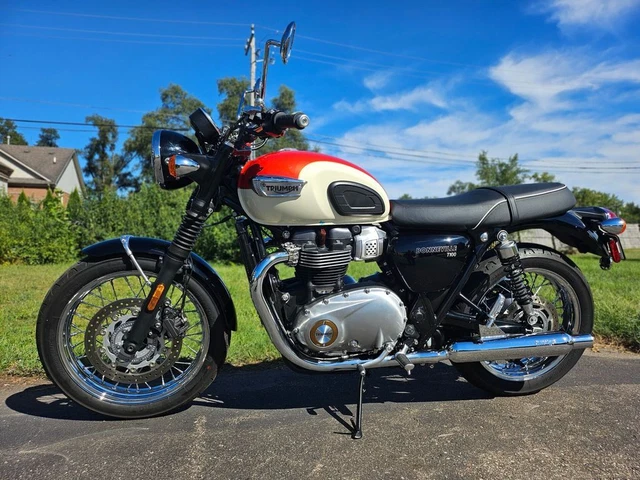 2018 Triumph Bonneville T100 New England White/ Intense Orange. 2018 Triumph Bonneville T100 New England White/ Intense Orange The Bonneville T100 is inspired by the legendary ‘59 Bonneville and has been beautifully designed to incorporate many of the original’s iconic features. The T100 has a wealth of quality finishes, including high-value brushed aluminium engine covers and classic unique bolt-on Triumph badges. Powered by a high torque 900cc engine, the T100 is available to own in three stylish, contemporary colours.Features may include:ABSTraction controlRide By WireImmobiliserLED rear lightUSB Power SocketTrip Computer. (800) 400-7433 (800) 400-7433 Visit eBay Store 1 2 3 4 5 6 7 8 9 10 11 12 13 14 15 16 17 18 19 20 21 22 23 24 25 26 of 26 Full size photos Full size photos 2018 Triumph Bonneville T100 New England White/ Intense Orange, ORANGE/WHITE wit Stock #: U875426TD Exterior Color: ORANGE/WHITE Interior Color: ORANGE/WHITE Mileage: 645 2018 Triumph Bonneville T100 New England White/ Intense Orange The Bonneville T100 is inspired by the legendary ‘59 Bonneville and has been beautifully designed to incorporate many of the original’s iconic features. The T100 has a wealth of quality finishes, including high-value brushed aluminium engine covers and classic unique bolt-on Triumph badges. Powered by a high torque 900cc engine, the T100 is available to own in three stylish, contemporary colours.Features may include:ABSTraction controlRide By WireImmobiliserLED rear lightUSB Power SocketTrip Computer Vehicle Description 2018 Triumph Bonneville T100 New England White/ Intense Orange The Bonneville T100 is inspired by the legendary ‘59 Bonneville and has been beautifully designed to incorporate many of the original’s iconic features. The T100 has a wealth of quality finishes, including high-value brushed aluminium engine covers and classic unique bolt-on Triumph badges. Powered by a high torque 900cc engine, the T100 is available to own in three stylish, contemporary colours.Features may include:ABSTraction controlRide By WireImmobiliserLED rear lightUSB Power SocketTrip Computer Vehicle Warranty Most new vehicles come with a factory warranty and some used vehicles have a remaining factory warranty. Please contact us for the warranty details specific to this vehicle. About The Used Motorcycle Store Learn More About The Used Motorcycle Store We are passionate motorcycle enthusiasts changing the way that riders buy motorcycles. In an increasingly digital world, sometimes you need to get away, and we can help you do that. As a part of the Windy City Motorcycle Company we have the largest independently owned motorcycle inventory in the United States with over 1,000 motorcycles available for purchase. We sell all brands and all kinds, so regardless of what your 2 (or 3) wheeled vice is, we’ve got it. And you can enjoy peace of mind with your purchase as all of our motorcycles are inspected by factory-trained technicians. Check out our huge and constantly growing inventory and contact us with any questions. We look forward to serving you! The best place to buy or sell pre-owned motorcycles is the Used Motorcycle Store, with our easy buying and selling processes. Our delivery and shipping policies mean you don’t even have to leave your home to get your new bike or sell your old one! Have a bike to sell? Choose the sell or trade-in options to find out more about what we can offer for your used motorcycles! We accept sales from across the continental United States, so we can offer the best prices to our customers from further away. We carry a wide variety of motorcycle manufacturers at our dealership, encompassing all the major brands sold in the United States. All of our pre-owned inventory is ready to ride with inspections performed by factory-trained technicians. Whether you are looking for a chopper, cruiser, sports bike, trike, or touring motorcycle we’ve got the bike you need! If you don’t see the bike of your dreams in our inventory let us know, we can get it! Contact Us Today! Call us at (800) 400-RIDE and experience our superior service and selection! We look forward to serving you! Contact us for more details (800) 400-7433 (800) 400-7433 Terms and Conditions Payment Options We accept the following payment methods: – Cashier’s Check/money order Vehicle Pickup & Shipping All shipping charges are buyer’s responsibility. Finance, Warranty, Shipping question? Call the dealer at (800) 400-7433 General Terms Notice to Bidders: The vehicles we list for sale at eBay are also for sale at our retail location. Please contact us to confirm vehicle availability. We reserve the right to end an auction early. Deposit: We require a non-refundable $500 deposit within 48 hours of winning the auction. Please call to make arrangements for payment. We accept the following forms of payment: Cash in person, certified funds, institutional financing. All sales transactions must be completed within 7 calendar days of auction close. Prices are subject to change without notice. Although every effort is made to present accurate and reliable vehicle information, use of this information is voluntary, and should only be deemed reliable after an independent review of its accuracy, completeness, and timeliness. It is the sole responsibility of the customer to verify the existence of options, accessories and the vehicle condition before time of sale. Any and all differences must be addressed prior to time of sale. No expressed or implied warranties, including the availability or condition of the equipment listed is made. EPA mileage estimates are for comparison purposes only. Actual mileage may vary depending on driving conditions, driving habits, and vehicle maintenance. Fees and Taxes State or local taxes, title, license fee, processing fees, registration fee, dealer documentary fee, finance charges, emission testing fees, and compliance fees are additional to the advertised price.