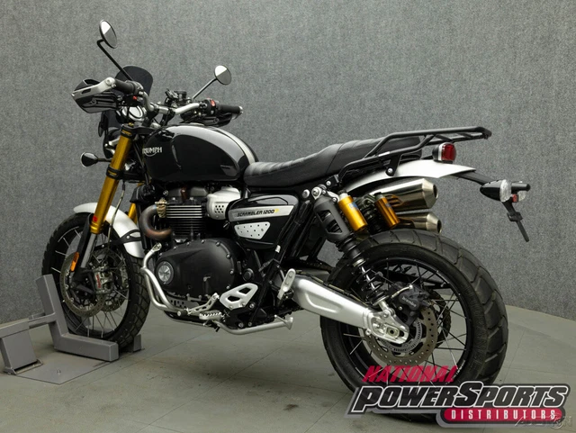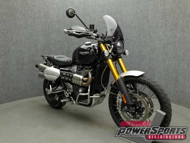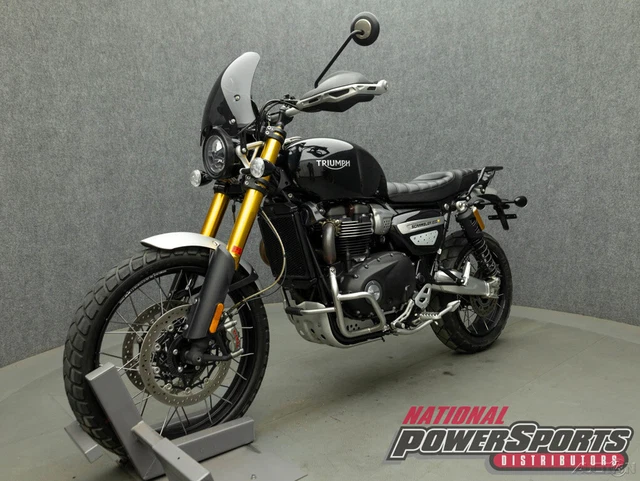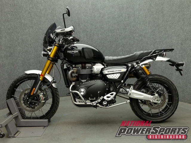 2022 Triumph Scrambler 1200 XE. About This Vehicle This 2022 Triumph Scrambler 1200 XE with 5,118 miles passes NH state inspection and runs well. It comes equipped with ABS and traction control. Its been upgraded with a windscreen, a Hepco and Becker luggage rack, a GPS mount, a Corbin seat, and Triumph engine guards. The Scrambler takes inspiration from desert sleds of the 1960s but offers modern engineering and contemporary power to excel on and off the road. Powered by a 1200cc twin-cylinder engine, the Scrambler puts 88 horsepower and 81 foot-pounds of torque through a six-speed transmission. it weighs in at 456 pounds and has a 34.3 inch seat height. This Scrambler has received our Premium service and. Call us today | 800-509-2390 2022 Triumph Scrambler 1200 Video Description About This Vehicle This 2022 Triumph Scrambler 1200 XE with 5,118 miles passes NH state inspection and runs well. It comes equipped with ABS and traction control. Its been upgraded with a windscreen, a Hepco and Becker luggage rack, a GPS mount, a Corbin seat, and Triumph engine guards. The Scrambler takes inspiration from desert sleds of the 1960s but offers modern engineering and contemporary power to excel on and off the road. Powered by a 1200cc twin-cylinder engine, the Scrambler puts 88 horsepower and 81 foot-pounds of torque through a six-speed transmission. it weighs in at 456 pounds and has a 34.3 inch seat height. This Scrambler has received our Premium service and detail and comes covered under a ninety day, 3,000 mile nationwide warranty. We offer an unbelievable selection of quality used motorcycles and never charge any dealer fees! Nobody here is on commission and we are happy to take as much time with you as you need. We encourage you to see and hear this bike in person, but if you are unable to, we will be happy to do a live inspection via Skype, Facetime, or Google Duo. Please call 603-410-4120 for more info. Options and Standard Features Basic Information Year: 2022 Make: Triumph Model: Scrambler 1200 Trim: XE Stock Number: 61405 VIN: SMTD51HGXNTAT5021 Condition: Used Type: Standard Mileage: 5,118 Title: Clean Color: SAPPHIRE BLACK Engine Bore (in): 3.84 Bore (mm): 97.6 Carburetion Type: Fuel Injected Compression Ratio: 11.0:1 Cooling System: Liquid Cylinders: 2 Engine Disp. to Weight (cc): 2.63 Engine Size (cc): 1200 Engine Size (ci): 73.2 Engine Stroke: 4-Stroke Engine Type: Parallel Twin Fuel Capacity (gal): 4.2 Fuel Injector Fuel Requirements: Regular Horsepower: 89 Horsepower (kW): 66.2 Horsepower RPM: 7400 Starter: Electric Stroke (in): 3.15 Stroke (mm): 80 Torque (Ft Lbs): 81.1 Torque (Nm): 110 Torque RPM: 3950 Valve Configuration: SOHC Valves: 8 Valves Per Cylinder: 4 Drivetrain Number Of Speeds: 6 Primary Drive (Rear Wheel): Chain Transmission: Manual Primary Drive (Engine / Transmission): Gear Chassis & Suspension Frame: Aluminum / Steel Front Suspension Brand Name: Showa Front Suspension Size (in): 1.9 Front Suspension Size (mm): 47 Front Suspension Type: Inverted Fork Front Travel (in): 9.8 Front Travel (mm): 250 Number Rear Shock Absorbers: 2 Rear Adjustable Shock / Spring Pre-Load Rear Suspension Brand Name: Ohlins Rear Suspension Material: Aluminum Rear Suspension Type: Twin Sided Swing Arm Rear Travel (in): 9.8 Rear Travel (mm): 250 Brakes ABS Brakes Brake Brand Name: Brembo Front Brake: Dual Hydraulic Disc Front Brake Diameter (in): 12.6 Front Brake Diameter (mm): 320 Linked Brake System Front to Rear Rear Brake: Hydraulic Disc Rear Brake Diameter (in): 10 Rear Brake Diameter (mm): 255 Safety Headlight Type: LED Fuel Level Warning Rearview Mirrors Temperature Warning Temperature Warning Type: Light Comfort Adjustable Levers Digital Instrumentation Trip Odometer Specifications Dry Weight (kg): 207 Dry Weight (lbs): 456 Front Tire (Full Spec): Metzler Tourance: 90/90-21 Front Tire (Inches): 21 Front Tire Aspect Ratio: 90 Front Tire Width: 90 Front Wheel Width (in): 2.15 Fuel Capacity (liters): 16 Height (inches): 49 Height (mm): 1250 Length (inches): 91 Length (mm): 2325 Rear Tire (Full Spec): Metzler Tourance: 150/70 R17 Rear Tire (Inches): 17 Rear Tire Aspect Ratio: 70 Rear Tire Width: 150 Rear Wheel Width (in): 4.25 Seat Height (inches): 34 Wheelbase (in): 61.8 Wheelbase (mm): 1570 Wheels Composition: Aluminum Width (inches): 35 Width (mm): 905 Speedometer Other Information Detachable Passenger Seat Exterior Covers Exterior Guards Foot Pegs Foot Peg Location: Driver and Passenger Fork Guards Hand Guards Front Fender Hand Grips Side Cover Rear Fender Stand Stand Type: Kick Shipping Our shipping service includes shipping from our shop right to your door. It will be carried across the road in specially-equipped trucks on a motorcycle specific skid and delivered with care. This includes a minimum of $8000 insurance. Transit time is typically within 21 business days. Delivery available to the continental US only. Please call our sales staff at (603) 410-4120 for pricing and details. FAQ Do you ship bikes? Are the pictures of the actual bike being sold? What is your warranty? Is the title clean? I’m from California, can I buy a bike from you? I see your bike is also on eBay. Can I buy it there cheaper? Do you take trades or buy bikes? View All … Payment Terms Buy it Now Price does not reflect Freight, Destination, and Setup charges. To see a breakdown of all associated fees on new vehicles, please visit the listing on our website. A $250 deposit is due within 24 hours of the end of the auction and the balance is due within 7 days. Unless otherwise agreed upon, the vehicle must be shipped or picked up within 10 days of the auction’s end. Communication is required within 24 hours, or the winning bidder risks having the auction relisted. We accept certified bank checks, money orders, bank to bank wire transfers, and of course cash in person. Credit cards and PayPal are only accepted for the $250 deposit. We cannot take either method for the full payment amount. Bank to bank wire