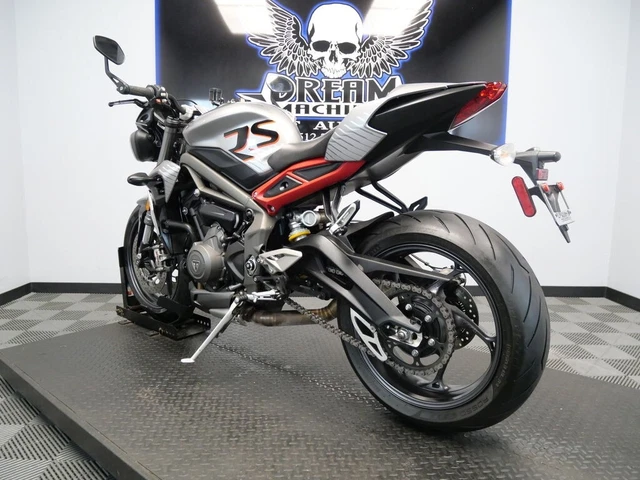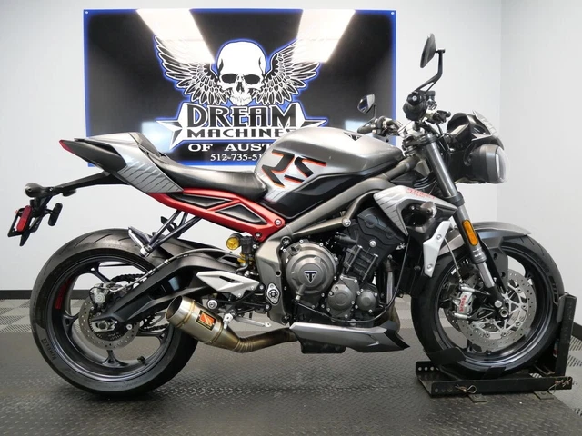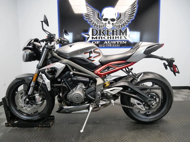 2022 Triumph Street Triple RS. BOOK VALUE IS $11,420 SHIPPING, LEASING, FINANCING AND EXTENDED WARRANTY MAY BE AVAILABLE! YOU ARE LOOKING AT A 2022 TRIUMPH STREET TRIPLE RS WITH 12,080 MILES ON IT. IT IS SILVER ICE IN COLOR AND POWERED BY A 765CC FUEL INJECTED ENGINE AND 6 SPEED TRANSMISSION. THE BIKE COMES WITH ABS BRAKES AND 1 KEY. A COMPETITION WERKES EXHAUST ($459.95) HAS BEEN ADDED TO THE BIKE. (512) 714-4323 (512) 714-4323 Visit eBay Store 1 2 3 4 5 6 7 8 9 10 11 12 13 14 15 16 17 18 19 20 21 22 23 24 25 26 27 28 29 30 31 32 33 34 35 36 37 38 39 40 41 42 43 44 45 46 47 48 49 50 51 52 53 54 55 56 57 58 59 60 61 62 of 62 Full size photos Video Full size photos Video Dream Machines of Austin 2022 Triumph Street Triple RS 12080 Miles Silver Stock #: AY5664 Exterior Color: Silver Mileage: 12,080 BOOK VALUE IS $11,420 SHIPPING, LEASING, FINANCING AND EXTENDED WARRANTY MAY BE AVAILABLE! YOU ARE LOOKING AT A 2022 TRIUMPH STREET TRIPLE RS WITH 12,080 MILES ON IT. IT IS SILVER ICE IN COLOR AND POWERED BY A 765CC FUEL INJECTED ENGINE AND 6 SPEED TRANSMISSION. THE BIKE COMES WITH ABS BRAKES AND 1 KEY. A COMPETITION WERKES EXHAUST ($459.95) HAS BEEN ADDED TO THE BIKE. THERE ARE NO SCRATCHES, DENTS, OR DINGS THAT I CAN FIND WITH THE EXCEPTION OF A LIGHT SCUFF ON THE TANK. THE CHROME AND ALUMINUM ARE IN GOOD CONDITION. THE TIRES HAVE GOOD TREAD LEFT ON THEM Vehicle Description BOOK VALUE IS $11,420 SHIPPING, LEASING, FINANCING AND EXTENDED WARRANTY MAY BE AVAILABLE! YOU ARE LOOKING AT A 2022 TRIUMPH STREET TRIPLE RS WITH 12,080 MILES ON IT. IT IS SILVER ICE IN COLOR AND POWERED BY A 765CC FUEL INJECTED ENGINE AND 6 SPEED TRANSMISSION. THE BIKE COMES WITH ABS BRAKES AND 1 KEY. A COMPETITION WERKES EXHAUST ($459.95) HAS BEEN ADDED TO THE BIKE. THERE ARE NO SCRATCHES, DENTS, OR DINGS THAT I CAN FIND WITH THE EXCEPTION OF A LIGHT SCUFF ON THE TANK. THE CHROME AND ALUMINUM ARE IN GOOD CONDITION. THE TIRES HAVE GOOD TREAD LEFT ON THEM Vehicle Warranty New Vehicles come with a full-factory warranty. Used vehicles may have a remaining-factory warranty, but please contact us for the warranty details specific to this vehicle. About Dream Machines of Austin Dream Machines of Austin is the premier pre-owned motorcycle dealer in Austin, servicing all of Central Texas. We currently offer more than 500 different motorcycles for you to choose from, including Indian, Aprilia, BMW, Big Dog, Can-Am, Ducati, Harley-Davidson®, Honda, Kawasaki, Suzuki, Triumph, Victoryand more, for sale in Central Texas. We offer nationwide financing and partner with the best local credit unions and national lenders which allows us to offer the lowest rates around. We offer nationwide financing with the lowest rates available. Even if you’ve got a few dings on your credit, we can get you approved for a loan. We also offer several extended warranty options to help protect your new ride. Contact us for more details (512) 714-4323 (512) 714-4323 Terms and Conditions Payment Options We accept the following payment methods: – Cashier’s Check/money order Vehicle Pickup & Shipping All shipping charges are buyer’s responsibility. Finance, Warranty, Shipping question? Call the dealer at (512) 714-4323 General Terms Notice to Bidders: All of the vehicles we list on eBay are for sale locally. We reserve the right to end an auction early. All cars are immediately ready for delivery upon sale. Deposit: We require a non-refundable $500 deposit within 48 hours of winning the auction. Please call to make arrangements for payment. Payment Types: Cash in person, Certified Funds, Institutional Financing All sales transactions must be completed within 7 calendar days of auction close. Prices subject to change without notice and do not include Title, License, Registration Fees, State or Local Taxes or Processing Fees, if any. Please contact seller first for vehicle availability. Although every effort is made to present accurate and reliable information, use of this information is voluntary, and should only be deemed reliable after an independent review of its accuracy, completeness, and timeliness. It is the sole responsibility of the customer to verify the existence of options, accessories and the vehicle condition before time of sale. Any and all differences must be addressed prior to time of sale. No expressed or implied warranties, including the availability or condition of the equipment listed is made. EPA mileage estimates for comparison purposes only. Actual mileage may vary depending on driving conditions, driving habits, and vehicle maintenance. Fees and Taxes Sales tax, title, license fee, registration fee, dealer documentary fee, finance charges, emission testing fees, and compliance fees are additional to the advertised price. Vehicle is listed locally, we reserve the right to end the auction at any time.