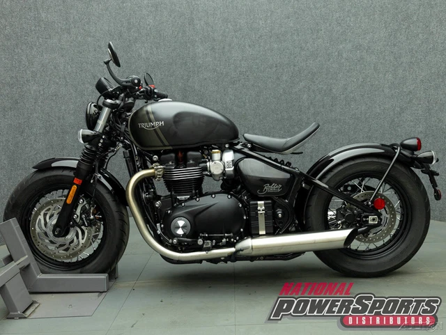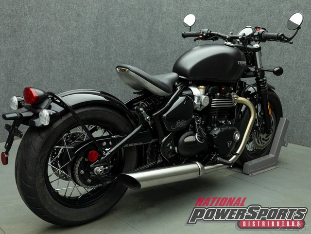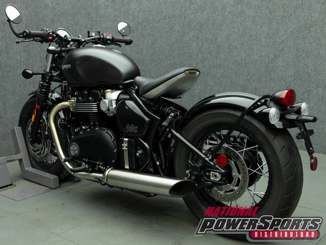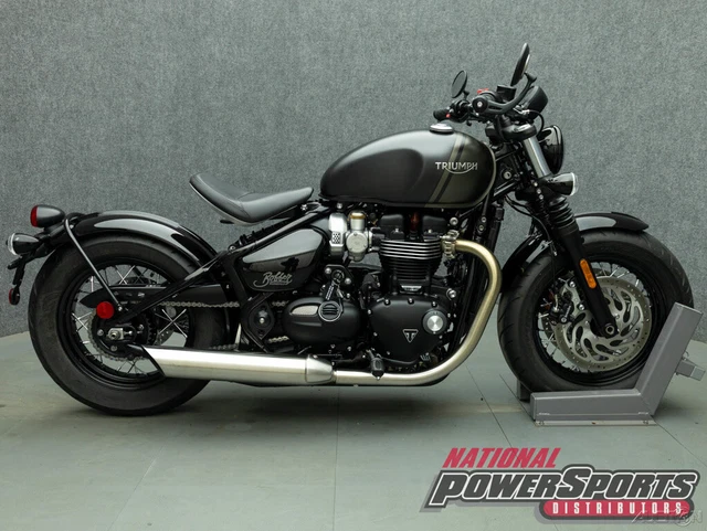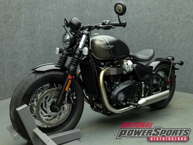 2023 Triumph Bonneville Bobber WABS. About This Vehicle This stock 2023 Triumph Bonneville Bobber with 1,308 miles passes NH state inspection and runs well. It comes equipped with ABS, traction control, and cruise control. The Bobber’s classic styling, solo seat, and contemporary power make it a compelling modern classic that stands out even among other Triumph models. Powered by a 1200cc parallel twin engine, the Bobber puts 77 horsepower and 78 foot-pounds of torque through a six-speed transmission. It weighs in at 502 pounds and has a 27.2-inch seat height. This Bonneville Bobber has received our Premium service and detail and comes covered by a nationwide 90-day/3,000-mile warranty. Call us today | 800-509-2390 2023 Triumph Bonneville Bobber Video Description About This Vehicle This stock 2023 Triumph Bonneville Bobber with 1,308 miles passes NH state inspection and runs well. It comes equipped with ABS, traction control, and cruise control. The Bobber’s classic styling, solo seat, and contemporary power make it a compelling modern classic that stands out even among other Triumph models. Powered by a 1200cc parallel twin engine, the Bobber puts 77 horsepower and 78 foot-pounds of torque through a six-speed transmission. It weighs in at 502 pounds and has a 27.2-inch seat height. This Bonneville Bobber has received our Premium service and detail and comes covered by a nationwide 90-day/3,000-mile warranty. We offer an unbelievable selection of quality used motorcycles and never charge any dealer fees! Nobody here is on commission and we are happy to take as much time with you as you need. We encourage you to see and hear this bike in person, but if you are unable to, we will be happy to do a live inspection via Skype, Facetime, or Google Meet. Please call 603-410-4120 for more info. Options and Standard Features Basic Information Year: 2023 Make: Triumph Model: Bonneville Bobber Trim: WABS Stock Number: 63418 VIN: SMTD53HL0PTBG6417 Condition: Used Type: Standard Mileage: 1,308 Title: Clean Color: MATTE STORM GREY/MATTE IRONSTONE Engine Bore (in): 3.8 Bore (mm): 97.6 Carburetion Type: Fuel Injected Compression Ratio: 10.0:1 Cooling System: Liquid Cylinders: 2 Engine Size (cc): 1200 Engine Size (ci): 73.2 Engine Stroke: 4-Stroke Engine Type: Parallel Twin Fuel Capacity (gal): 3.2 Fuel Injector Fuel Requirements: Regular Horsepower: 76 Horsepower (kW): 57 Horsepower RPM: 6100 Starter: Electric Stroke (in): 3.1 Stroke (mm): 80 Torque (Ft Lbs): 78.2 Torque (Nm): 106 Torque RPM: 4000 US Miles Per Gallon (Combined): 60 Valve Configuration: SOHC Valves: 8 Valves Per Cylinder: 4 Drivetrain Number Of Speeds: 6 Primary Drive (Rear Wheel): Chain Transmission: Manual Primary Drive (Engine / Transmission): Gear Chassis & Suspension Frame: Steel Front Suspension Size (in): 1.9 Front Suspension Size (mm): 47 Front Suspension Type: Telescopic Fork Front Travel (in): 3.5 Front Travel (mm): 90 Number Rear Shock Absorbers: 1 Rear Adjustable Shock / Spring Pre-Load Rear Suspension Brand Name: KYB Rear Suspension Material: Steel Rear Suspension Type: Twin Sided Swing Arm Brakes ABS Brakes Brake Brand Name: Brembo Front Brake: Dual Hydraulic Disc Front Brake Diameter (in): 12.2 Front Brake Diameter (mm): 310 Linked Brake System Front to Rear Rear Brake: Hydraulic Disc Rear Brake Diameter (in): 10 Rear Brake Diameter (mm): 255 Safety Headlight Type: LED Fuel Level Warning Rearview Mirrors Temperature Warning Temperature Warning Type: Gauge Comfort Digital Instrumentation Trip Odometer Specifications Body Material: Plastic Front Tire (Full Spec): Avon Cobra AV71: 130/90 B16 Front Tire (Inches): 16 Front Tire Aspect Ratio: 90 Front Tire Width: 130 Front Wheel Width (in): 2.5 Fuel Capacity (liters): 12 Height (inches): 40 Height (mm): 1024 Rear Tire (Full Spec): Avon Cobra AV72: 150/80 R16 Rear Tire (Inches): 16 Rear Tire Aspect Ratio: 80 Rear Tire Width: 150 Rear Wheel Width (in): 3.5 Seat Height (inches): 27 Wet Weight (kg): 251 Wet Weight (lbs): 553 Wheelbase (in): 59.1 Wheelbase (mm): 1500 Wheels Composition: Steel Width (inches): 31 Width (mm): 800 Speedometer Other Information Engine Case Guard Exterior Covers Exterior Guards Foot Pegs Foot Peg Location: Driver and Passenger Fork Guards Front Fender Hand Grips Side Cover Rear Fender Stand Stand Type: Center Shipping Our shipping service includes shipping from our shop right to your door. It will be carried across the road in specially-equipped trucks on a motorcycle specific skid and delivered with care. This includes a minimum of $8000 insurance. Transit time is typically within 21 business days. Delivery available to the continental US only. Please call our sales staff at (603) 410-4120 for pricing and details. FAQ Do you ship bikes? Are the pictures of the actual bike being sold? What is your warranty? Is the title clean? I’m from California, can I buy a bike from you? I see your bike is also on eBay. Can I buy it there cheaper? Do you take trades or buy bikes? View All … Payment Terms Buy it Now Price does not reflect Freight, Destination, and Setup charges. To see a breakdown of all associated fees on new vehicles, please visit the listing on our website. A $250 deposit is due within 24 hours of the end of the auction and the balance is due within 7 days. Unless otherwise agreed upon, the vehicle must be shipped or picked up within 10 days of the auction’s end. Communication is required within 24 hours, or the winning bidder risks having the auction relisted. We accept certified bank checks, money orders, bank to bank wire transfers, and of course cash in person. Credit cards and PayPal are only accepted for the $250 deposit. We cannot take either method for the full payment amount. Bank to bank wire transfers usually show in our account within 24 hours of transfer, except on weekends. Banks now require that any out of state certified checks, money orders and treasurers checks require 5 business days to clear. Please keep this in mind when 
