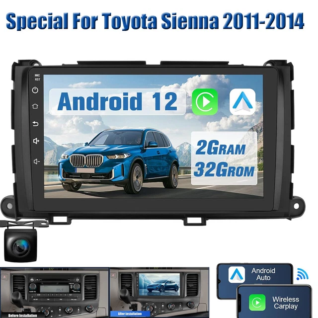 Android For Toyota Sienna 2011-2014 Car Radio Stereo Apple Carplay GPS Navi +Cam. Plug & Play 2G RAM & 32G ROM Apple Wireless CarPlay Android Auto. Support wireless/wired Apple CarPlay & Android AUTO. Rear dual USB port input: Support rear cable USB input, can play music/movie Or wire CarPlay Android Auto. Android 12.0 Car Stereo Radio For 2011-2014 Toyota Sienna Plug & Play 2G RAM & 32G ROM Apple Wireless CarPlay Android Auto NOTE: Hybrid, SE and model with JBL sound system need a canbus decoder & special cable. We can offer them with extra cost. If you found the power cable connector come with the stereo can not fit your original car connector, Please contact us for them. Features: 1. Android 12.0 operating system 2G RAM & 32G ROM 2. Support wireless/wired Apple CarPlay & Android AUTO 3. WiFi connect: Built-in WiFi module, can connect to internet by WiFi hot spot, download APP to watch online video etc. 4. GPS navigation: Built-in navigation module, support on-line off-line navigation, free navigation map 5. Bluetooth function: Built-in Bluetooth module, support Bluetooth phone connect, handsfree for calling or Bluetooth music play 6. Rear view function: Support Rear view camera input, backing car more safer and convenient (Free camera come with stereo) 7. Radio tuning: Support FM Radio, FM1/FM2/FM3 87.5-108 MHz, you can listen the radio which is your interested 8. Rear dual USB port input: Support rear cable USB input, can play music/movie Or wire CarPlay Android Auto 9. Screen: 2.5D Capacitive touch screen, 1024*600 resolution, support 1080P video 10. Improve sound quality with equalizer, use DSP EQ to adjust the sound to render better results 11. Optional accessories: DVR(front camera optional) OBD2: Support OBD2(ELM327 OBD2 adapter optional) Specifics: ◆Voltage:DC 12V ◆ Operating system:Android 12.0 ◆Apple CarPlay: Support Wireless/Wired Connection ◆Android Auto: Support Wireless/Wired Connection ◆ RAM:2G ◆ ROM:32G ◆ Screen size:9 inch 2.5D Capacitive touch screen ◆ Bluetooth Version:5.0 ◆ Bluetooth keyword:0000 ◆ USB: Dual USB 3.0 ◆ Radio Band: FM ◆ Audio Ouput: 4x50W ◆ Resolution: 1024*600 Pixel Support 1080P video ◆ Audio format:MP3 MP2 AAC OGG FLAC APE WMA WAV RM AC3 ◆ Video format:AVI 3GP/MP4 MOV MPG MKV WMV RMVB ◆ Language:English, Arabic, Russian, Hebrew, Spanish, Italian, French, Thai, German, Japanese, Korean, Turkish, Czech, Hungarian, Dutch, Polish, Swedish, Ukrainian, Romanian, Greek, Danish, Finnish Product included: 1 x Android Car Stereo 1 x Power Cable 1 x GPS Antenna 2 x USB Cable 1 x RCA Cable 1 x Backup Camera 1 x User Manual Shipping 1. We will send the item to you from the warehouse near you. 2. We only ship to address that you left on the order, must confirm your Shipping address. 3. All the items will be shipping within 1-2 working days after receiving the payment, except some holidays. 4. When the shipping method is express delivery, some areas need to pay remote fees to the courier company. Returns 1. If you have not satisfied as you received the item, please return it within 30 days for a replacement or money back. Please contact us before you return it. 2. All returned items must be in the original packaging with all components and accessories included, and you must provide us the return shipping information (The shipment or the tracking number) 3. Return shipping fee is to be paid by the buyers. We will not be responsible for any custom duty or import tax. Warranty 1.One Year Manufacturer’s Warranty for defective items (excluding items damaged and/or misused after receipt). 2.Defective items must be reported and returned to us within the warranty period (and in the original packaging, if possible). You must tell us what the defect is and give us your eBay ID. We do not repair or replace items with an expired warranty.