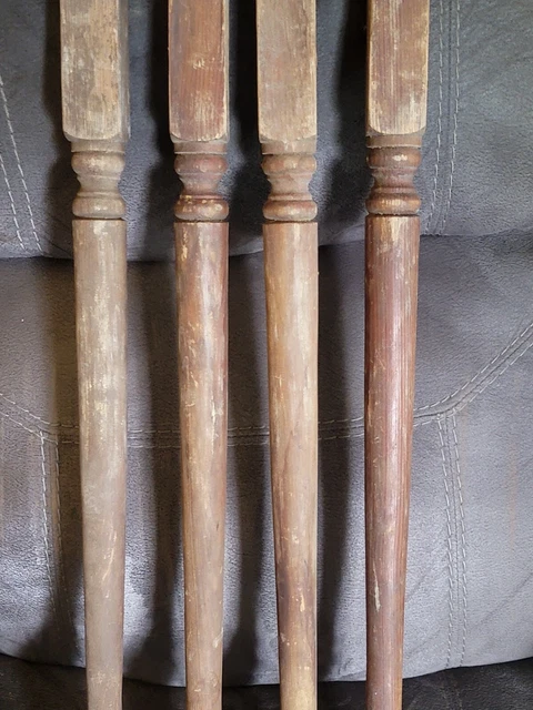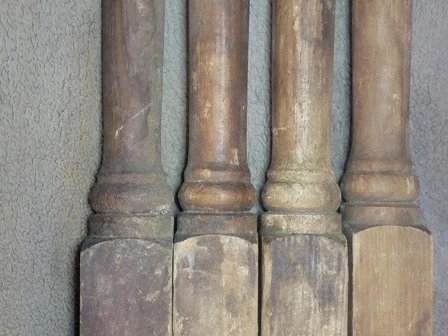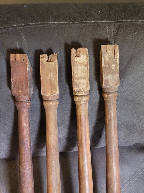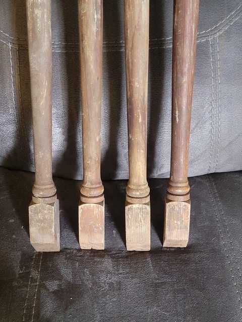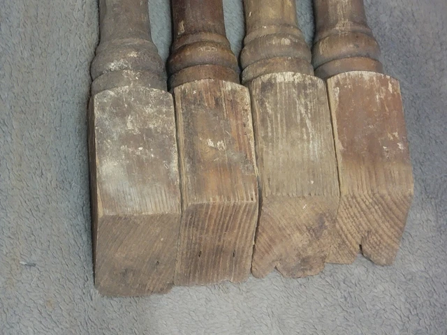 Antique Lot 4 Turned Hardwood Spindles 26¾” X 1⅜” Staircase Decor Furniture (B). Antique lot of 4 salvaged hand-turned hardwood staircase spindles. I’m not positive about the type of wood. The bottoms are cut at a 45% angle. These are great for staircase restoration, custom table/furniture legs, or simply as decor. Antique lot of 4 salvaged hand-turned hardwood staircase spindles. I’m not positive about the type of wood. The bottoms are cut at a 45% angle. The tops have a 1″ wooden tip that would have fit in the railing. There is a medium wood stain that is wearing off more so on some than others. They are salvaged spindles so dirt, nail holes, and minor splits should be expected, but there is no major damage. These are great for staircase restoration, custom table/furniture legs, or simply as decor. They are Overall in good solid condition. Each spindle measures 1⅜” square. They all Measure between 26⅝-26¾” long not counting the 1″ wooden tips. Please see the pictures as they are part of the description. ***** Please note eBay does apply and collect sales tax to orders that are in states that require sales tax to be collected. As a seller I do not set the tax rate nor do I collect it. It goes directly to eBay at the time of sale for them to submit to your state. ***** ***** Items ship Monday – Friday (LOC 09-28-23-17B)