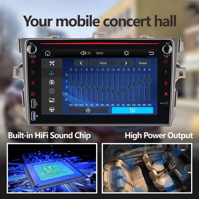 Car Stereo for Toyota Corolla 2009-2013 CarPlay Android Auto High power BT RDS. Apple CarPlay. Built-inwireless and wired Apple CarPlay, no need to use the third party app such as Zlink;. Support RDS;. For Toyota Corolla 2009-2012. Android Auto. Built-inwireless and wired Android Auto,no need to use the third party app such as Zlink ;. Car Stereo for Toyota Corolla 2009-2013 Compatible with CarPlay Android Auto High power output Bluetooth IPS touchscreen AM/FM radio receiver Compatible Car Models For Toyota Corolla 2009-2012 NOTE: The compatible car models are for reference. Please kindly check the size of the centre console of your car before purchasing. If you are not sure, please contac us. Specifications Sound Real 4*48w output, your car deserves better sound quality; 16-Band Eualizer; Jazz, Pop, Rock, Classic, User and other preset; Independent output for subwoofer; Independent output for Amplifier; Apple CarPlay Built-in wireless and wired Apple CarPlay, no need to use the third party app such as Zlink; Suppport “Hey Siri!” to voice controlling; iOS original style experience on car stereo; Suppport listen to FM/AM radio and use CarPlay navigation at the same time; Android Auto Built-in wireless and wired Android Auto, no need to use the third party app such as Zlink ; Suppport “OK Google!” to voice controlling; Suppport listen to FM/AM radio and use Android Auto navigation at the same time; Bluetooth Hands-free calling; Bluetooth music; ID3 TAGS; Phone book; Calling records; Radio FM frequency: 87.5-108MHz; AM frequency: 530-1710KHz; Support RDS; Support 30 stations preset; Support auto search/manual search; Soppurt North America/South America/Europe Area; Mirror Link Support wireless and wired AirPlay; Support wireless and wired Mirror Link; Rear View Camera Supports AHD rear view camera;(Note: The rear view camera is not included . If you need it, please contact us or click here to purchase it .(eBay item id:395408030943)) Supports auto reversing image and manually reversing image; Supports third party rear view camera; DVR Supports dash camera; (Note: The dash camera is not included . If you need it, please contact us to purchase it.) Supports view back; Supports video locking; DAB+ Supports DAB+;(Note: It need an extra DAB+ adaptor. If you need it, please contact us to purchase it.) USB Dual USB port; Supports USB video(MP4/AVI, 480p/720p/1080P); Supports USB music(MP3); Supports mobile phone charging; Steering Wheel Controlling Support original steering wheel controlling; Support aftermarket steering wheel remote; Other specifications Include an external microphone; Supports video output; Supports English/French/German/ITALIAN/Spanish/Russian/Portuguese/Arabic/Polish/indonesia/Chinese (Simplified) Screen size: 8inch; Resolution: 1024*600; Screen Type: IPS; Input Voltage: 12V; Output: 4*48w; Plug and play, easy to install, no need to break the original wires; Shipping We will send the item to you from the warehouse near you; We only ship to address that you left on the order, must confirm your Shipping address; All the items will be shipping within 1-2 working days after receiving the payment, except some holidays; When the shipping method is express delivery, the courier company may charge remote fees in some areas; Returns If you have not satisfied as you received the item, please return it within 30 days for a replacement or money back. Please contact us before you return it; All returned items must be in the original packaging with all components and accessories included, and you must provide us the return shipping information (The shipment or the tracking number); Return shipping fee is to be paid by the buyers. We will not be responsible for any custom duty or import tax; Warranty One Year Manufacturer’s Warranty for defective items (excluding items damaged and/or misused after receipt); Defective items must be reported and returned to us within the warranty period (and in the original packaging, if possible); Customer need to tell us what the defect is and give us their eBay ID. We do not repair or replace items with an expired warranty;