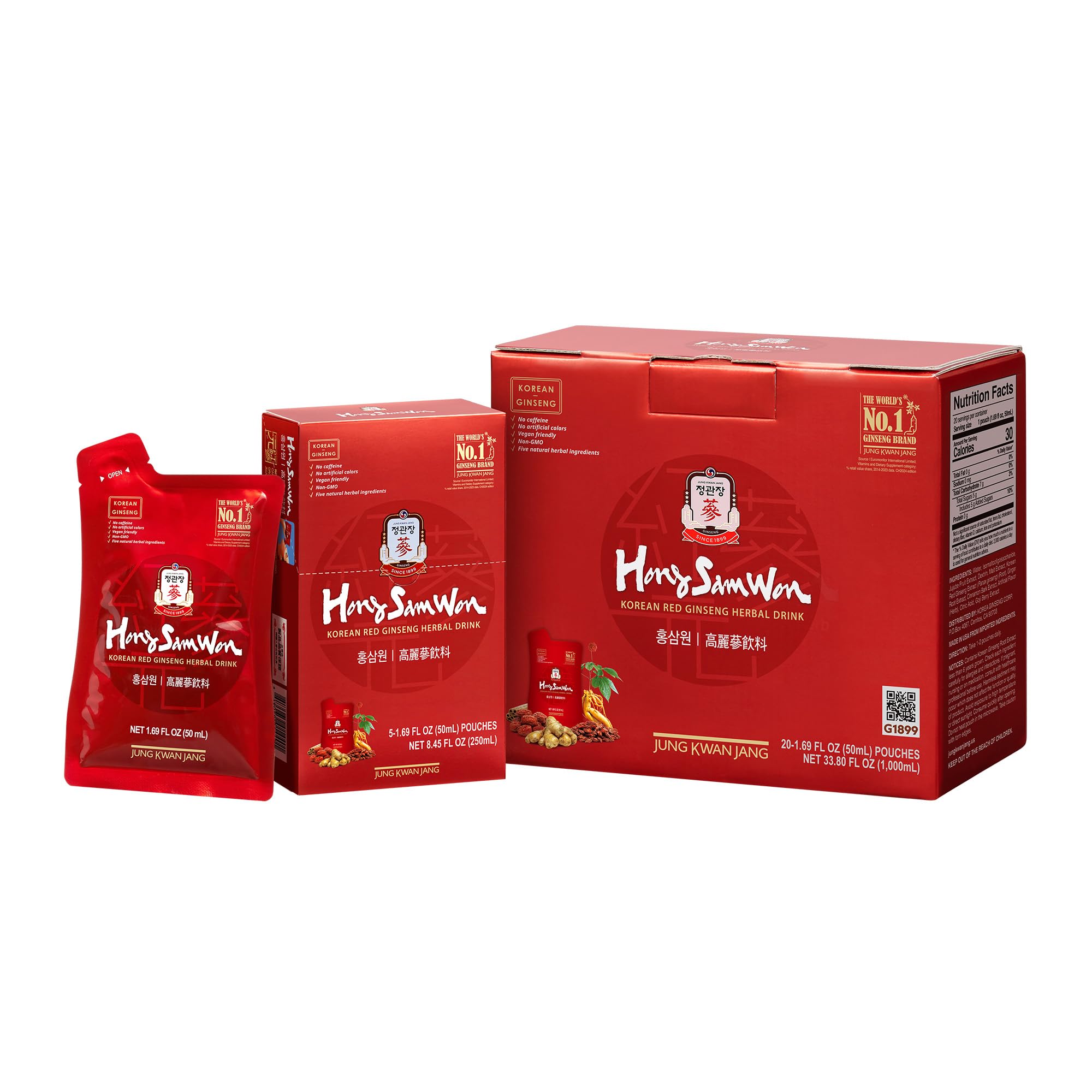 If you want to get energized, drink HONG SAM WON – A caffeine-free energizing drink made of 6 years grown Korean Red Ginseng Extract. HONG SAM WON includes jujube fruit, cinnamon and ginger and has a light and refreshing taste.A great pre-workout drink or healthy lifestyle choice, this Korean Red Ginseng Drink is designed to provide wellness benefits when you need an energy drink to help get you through the day.KOREAN RED GINSENG – There are several benefits that Korean Ginseng is known for. It helps to relieve stress, improve the immune system, supports cognitive function, increases blood circulation, supports nitric oxide production and increases energy.STIMULANT-FREE Natural Energy – While energy drinks or caffeine pills often lead to jitters or headaches, CheongKwanJang Red Ginseng Korean Drink releases a steady burst of energy to help you naturally increase productivity and stay focused. It helps provide you with a natural boost of energy, so you can go about your day without any side effects.#1 GINSENG BRAND IN THE WORLD – CheongKwanJang – When it comes to a high quality product like ginseng, you do not want to go with a no-name brand. KGC (Cheong Kwan Jang) has been considered the top brand in the world for 120+ years! Tính năng sản phẩm• If you want to get energized, drink HONG SAM WON – A caffeine-free energizing drink made of 6 years grown Korean Red Ginseng Extract. HONG SAM WON includes jujube fruit, cinnamon and ginger and has a light and refreshing taste.• A great pre-workout drink or healthy lifestyle choice, this Korean Red Ginseng Drink is designed to provide wellness benefits when you need an energy drink to help get you through the day.• KOREAN RED GINSENG – There are several benefits that Korean Ginseng is known for. It helps to relieve stress, improve the immune system, supports cognitive function, increases blood circulation, supports nitric oxide production and increases energy.• STIMULANT-FREE Natural Energy – While energy drinks or caffeine pills often lead to jitters or headaches, CheongKwanJang Red Ginseng Korean Drink releases a steady burst of energy to help you naturally increase productivity and stay focused. It helps provide you with a natural boost of energy, so you can go about your day without any side effects.• #1 GINSENG BRAND IN THE WORLD – CheongKwanJang – When it comes to a high quality product like ginseng, you do not want to go with a no-name brand. KGC (Cheong Kwan Jang) has been considered the top brand in the world for 120+ years!