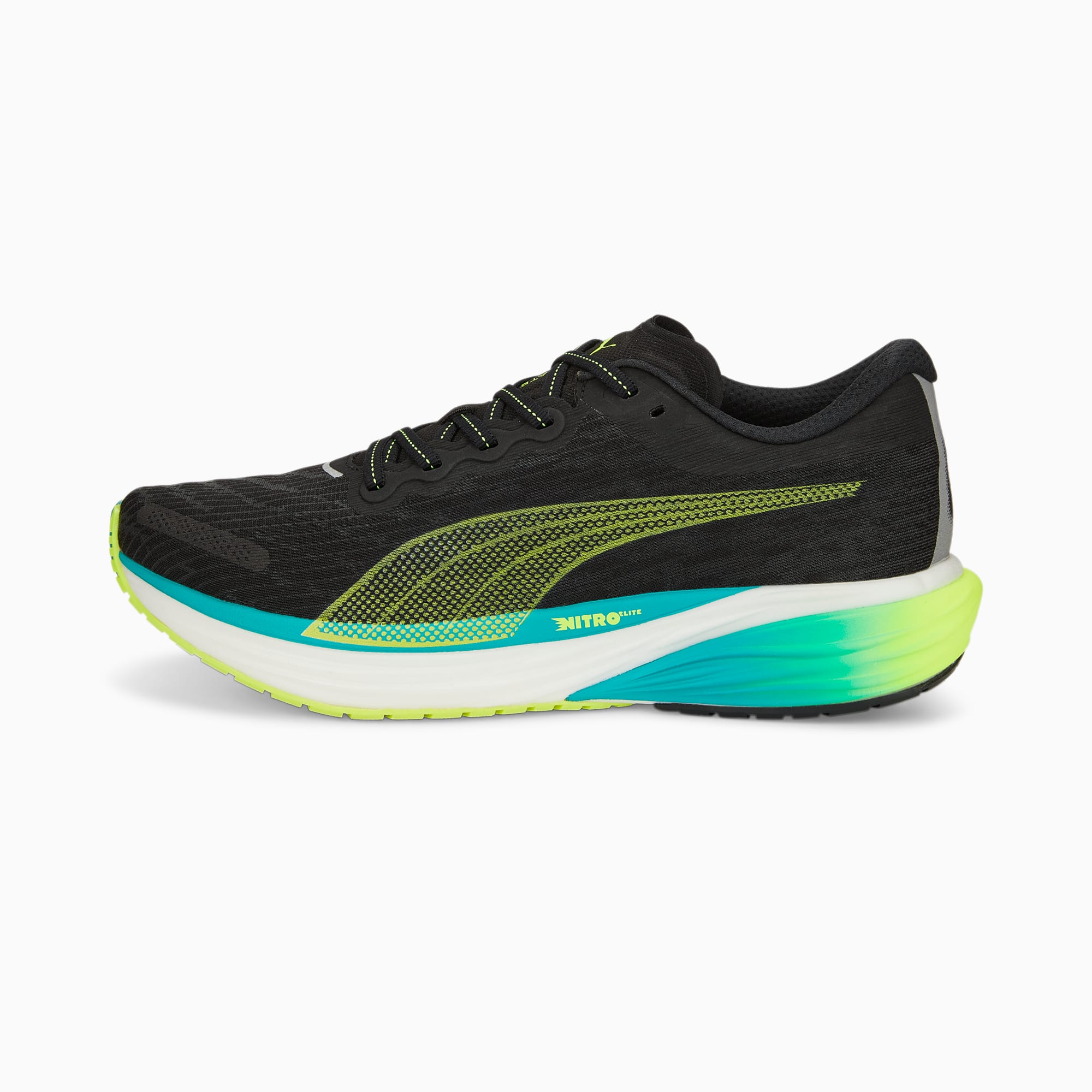 PRODUCT STORY The Deviate NITRO 2 – just like v1, only improved. It’s the max cushion, max performance running shoe that makes going faster even easier. The update includes NITRO Elite foam for improved responsiveness, a reworked collar to reduce heel slip, and a lighter, asymmetrical base that works better with your body across all distances – be it short runs, marathons, and even ultras. FEATURES & BENEFITS NITRO Elite: Premium performance foam technology that provides pinnacle responsiveness in an extremely lightweight packagePWRPLATE: Innovative carbon composite plate designed for maximum energy transfer and optimised running efficiencyPWRTAPE: Targeted upper reinforcement for support and durabilityPUMAGRIP: Durable performance rubber compound designed for all-surface traction DETAILS Breathable mesh upperReflective design elementsTPU heel spoilerBest for: Neutral pronatorsHeel-to-toe drop: 6mmCushioning level: MaxPUMA Formstrip on the lateral side