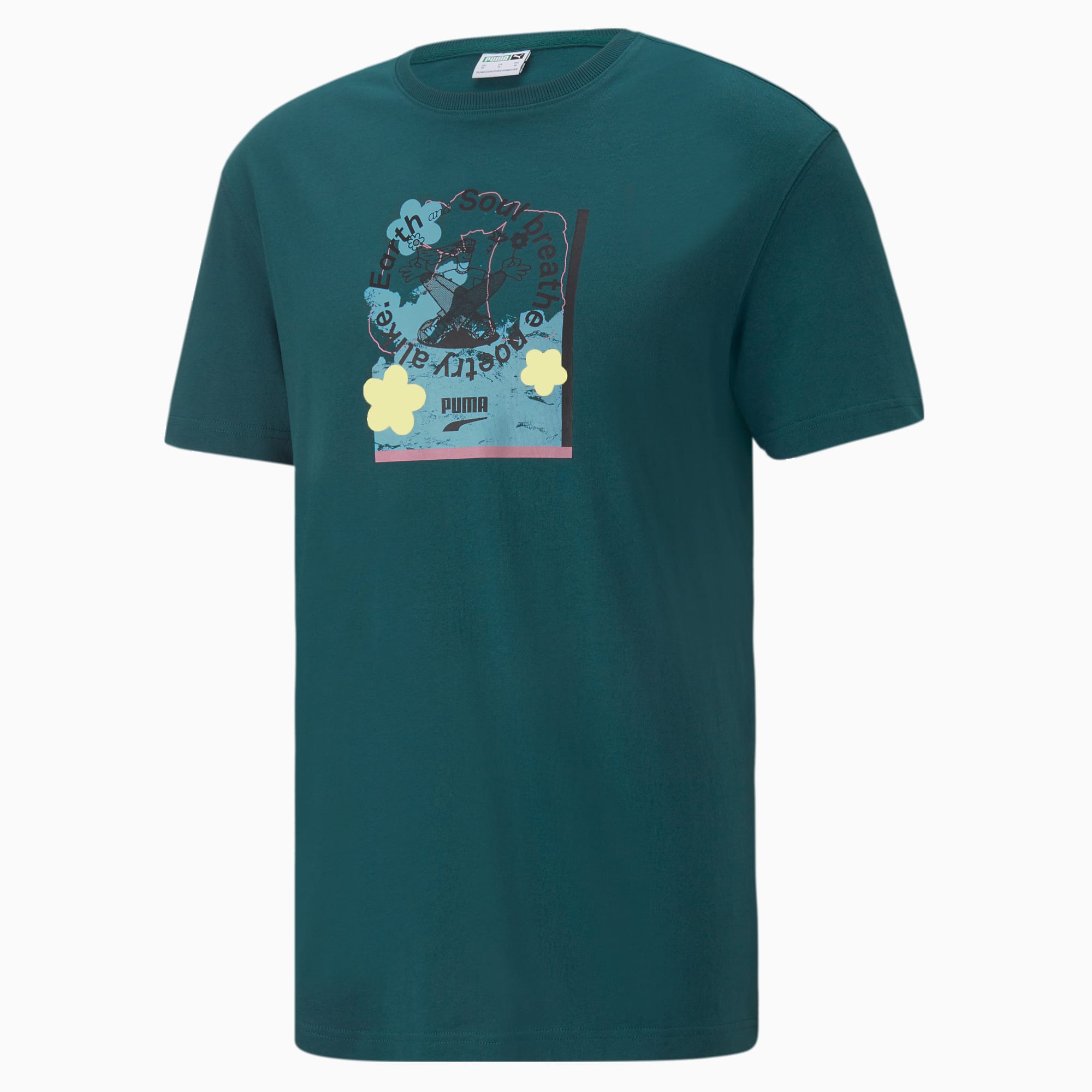 PRODUCT STORY The worlds of street, skate, and sustainability collide in the Downtown collection, and this relaxed-fit tee offers a breath of fresh air whether you’re dialling in on the streets or lounging about. FEATURES & BENEFITS Cotton: Cotton in PUMA products comes from farms with a focus on sustainable farming such as water efficiency and soil health protection. Learn more: PUMA.com/forever-betterRecycled content: Made with at least 20% recycled material as a step toward a better future DETAILS Relaxed fitRib crew neckMulti-colour rubber graphicWoven flag label on right side