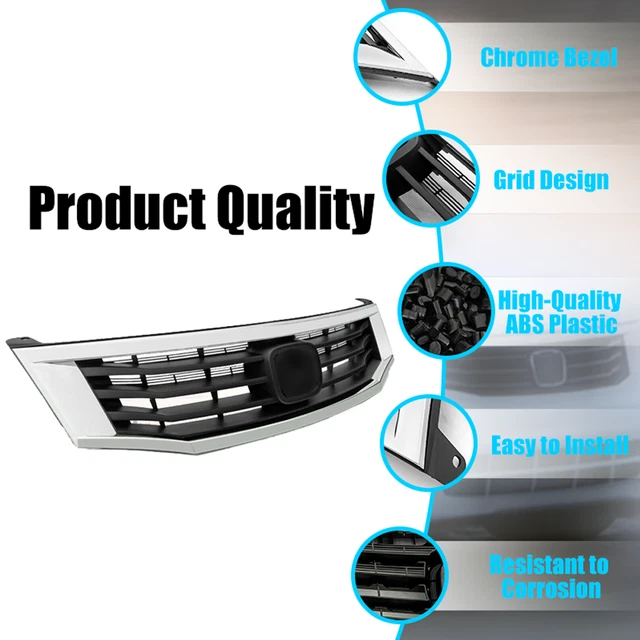 Fit 2008-2010 Honda Accord Sedan 4DR Bumper Upper Grille Chrome Grill HO1200189. Installation instruction manual NOT included. Fit 2008-2010 Honda Accord USD 115 3PCS For 2008 2009 2010 Honda Accord Chrome Front Upper Grille & Fog Lights Kit BUY NOW USD 41.99 Pair Fit 2008 2009 2010 Honda Accord Sedan Front Bumper Fog Lights Driving Lamps BUY NOW USD 69.88 Fits 2008-2010 Honda Accord Sedan Chrome Trim Front Bumper Upper Grille Grill BUY NOW FIT FOR : Fit 2008 2009 2010 Honda Accord Sedan PACKAGE INCLUDES: 1 X Front Upper Chrome Trim Grille Assembly AS PICS SHOWN FEATURES: 1.100% Brand new. 2.Made of high quality of ABS plastic. 3.Direct bolt on replacement part. 4.Surface Finish : Chrome. INSTALLATION: Installation instruction manual NOT included We recommend professional to do installation for this product Any damage during installation will not be refunded POLICY / TERMS: All items are Brand New unless stated otherwise on the listing. Professional installation is strongly recommended. Contact US: Any Questions, Just feel free to contact us on eBay. We will reply you in 24 hours. All my products we provide free 30 days return, when you choose the return reason please choose the reason”i don’t like it” or “Doesn’t fit”. By this option we will accept your rerurn immediately and provide return label for full refund. the others reason to return will take both of us many troubles to handle.