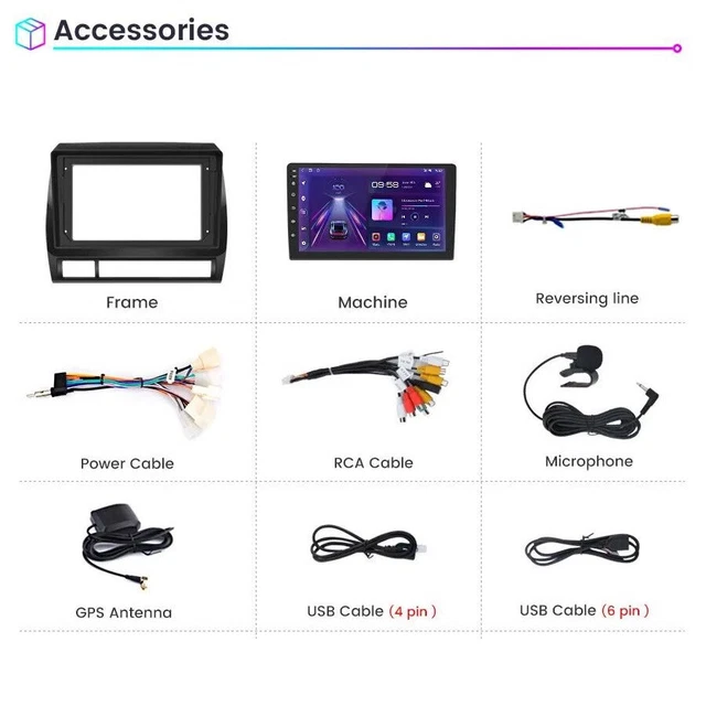 For Toyota Tacoma 2005-2013 Apple CarPlay Android 12.0 Car Stereo Radio WiFi GPS. ● Wireless Carplay : The wireless Carplay in-vehicle system can closely integrate the user’s iOS device and iOS experience with the dashboard system. Carplay: Wireless + Wired. ● Built-in WIFI : Connect WIFI, you will find a new world, stronger anti-interference ability, more stable Wifi wireless signal and faster transmission speed. Models and Years: For Toyota Tacoma 2005 2006 2007 2008 2009 2010 2011 2012 2013 2014 2015 Note: Although we have made every effort to ensure this item is compatible with the listed vehicles, please ensure you have the correct shape / size OEM unit before purchasing. if your car comes with JBL Sound system, you need buy extra harness Feature : ● 2G running memory, 32G storage memory , large memory space ● 4-core high-definition 9-inch capacitive screen running fast radio player, 1280*720 high resolution ● Built-in GPS navigation : Users can purchase offline navigation directly from the Play Store. Connect to wifi, use Google Maps perfectly, you can go wherever you want, and never get lost again ● Built-in WIFI : Connect WIFI, you will find a new world, stronger anti-interference ability, more stable Wifi wireless signal and faster transmission speed ●Rear view camera: Support high-definition camera, you need to select the camera, the car automatically switches when the reverse gear is connected ● Steering wheel control : through it you can control the functions you need through the steering wheel, which is more convenient ●Built-in A2DP/Hands Free/Phone book Bluetooth: Bluetooth hands-free call, Bluetooth music playback, automatic loading of the phone book, compared with the previous version, the speed is faster and the channel capacity is larger ● Driving recorder: You can choose the recorder, there is playback on the car, you can keep the evidence ●Support file manager: support downloading, installing and deleting thousands of Android applications ● Without any cables, you can enjoy music in your phone, and it supports USB connection. ● FM/RDS radio : Online music can be transmitted to the car stereo through FM to enjoy the original car stereo, 30 preset radio stations, high-end radio chip, powerful noise reduction and anti-interference ability, support FMRDS function, Clear channel search and low noise ● Split screen function : two pages can be displayed at the same time, such as navigation and music display at the same time ● Wireless Carplay : The wireless Carplay in-vehicle system can closely integrate the user’s iOS device and iOS experience with the dashboard system. Users who use Carplay can connect to the car system through a data cable to achieve voice-controlled navigation, make calls, send and receive messages, and listen to music. ● Android auto : The wired/wireless Android auto car system can closely integrate the user’s Android phone and player, and realize navigation, make calls, send and receive information, listen to music and other operations . ● Mobile phone link upgrade dual system mirror link : IOS/Android mirror link Specification : System: Android 12.0 Central Processing Unit: MTK 8227L A7 Chipset: Quad Core Operating speed: 1.5GHZ Screen size: 9” Screen resolution: 1280*720 Memory: 2GB (RAM) + 32GB (ROM) Power output: 4*45W Power amplifier: ST7388 Sound effect: ADI/HI-Res: 192khz/32bit Split screen: Support Carplay: Wireless + Wired Android auto: Wireless + Wired Steering wheel control function: Support Bluetooth version: MT6625 4.2 Radio frequency band: FM/RDS Map: Built-in offline map (requires internet download) WIFI: Support USB: Dual USB interface AHD camera: Support OBD2: Support DAB+: Support Hard Disk Video Recorder: Support Tire pressure monitoring system: Support Phone link: Support External microphone: Support Audio format: APE/FLAC/WAV/MP3/WMA, etc. Video format: MKV/RMVB/AVI/MP4/MDV, etc. Picture format: PNG/JPEG/JPG/GIF/WBMP/BNP, etc. Languages: Chinese/English/French/Italian/Korean/Japanese/Arabic/Spanish/Portuguese/Russian/Turkish/Vietnamese/Hebrew/Polish/German, etc. What’s in the box – 1*Power Cable – 2*USB Adapter Cable – 1*GPS Antenna – 1*RCA Harness – 1*Rear Camera input RCA Cable – 1*External Microphone – 1*AHD Reverse Camera ———– Tips: 1.Why can’t turn on the car radio ? 1.1Please check the Voltage of car radio:12V 1.2When you test this car radio,you can combine the red and yellow wires and connect them to the positive side of the power supply.Black line to negative power supply. 1.3Replace the same type of insurance to test the car radio. Note: Please must use our power cables to connect our car radio,it is not possible to insert the original car plug directly into our machine. 2.Why the car radio will show “No Signal” when we reversing? Please check if the camera’s line is properly connected to the car radio. Note:The video port of rear camera must insert the “CAMIN” port of car radio. 3.Why does the camera display “!” and “Can’t watch video while driving” when I use USB to watch videos? Please turn off the “Video Warning” function in the settings,then will be OK. 4.Why can’t search FM? 4.1: No radio antenna inserted; 4.2: Please check if the radio antenna is plugged in. Please insert more antennas several times to make it well contacted; 4.3: The signal of your location is not good. Please go to a better place to test again 4.4: The radio antenna on the car is broken/no effect; please replace the radio antenna and test again. 5.Why can’t connect the Bluetooth of car radio? 5.1 Open the phone settings interface, open the Bluetooth in the Bluetooth function, search for Bluetooth devices, find the player’s Bluetooth model to be paired; if you need a pairing code, enter 0000; if not, try 1234 or 123456. 5.2 Please try to use another mobile phone to test this function. All methods are correct and still cannot use Bluetooth, Please unpl