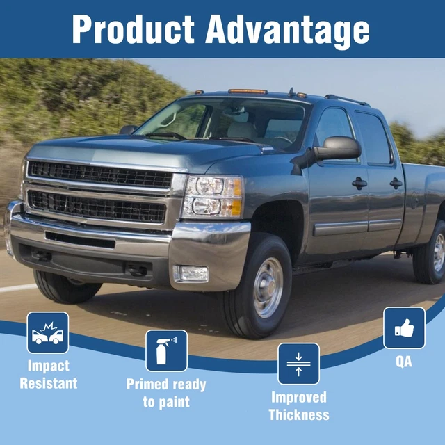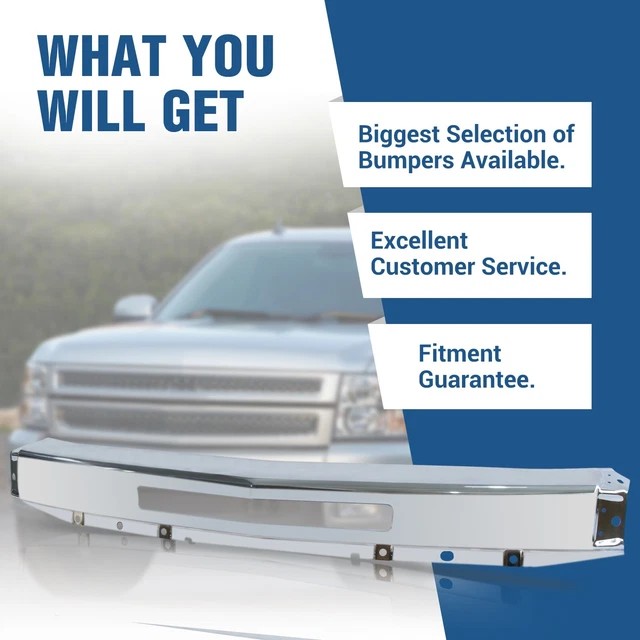 Front Bumper Chrome for 09-13 Silverado 1500 07-10 Silverado 2500 3500 HD Truck. 2007-2010 Chevrolet Silverado 3500 HD. 2007-2010 Chevrolet Silverado 2500 HD. 2009-2013 Chevrolet Silverado 1500. Type: Front Bumper. SUV/Car/Truck front bumpers protect your car from rocks, tree roots and other obstacles. Specification Installation Instruction: Not Included Manufacturer Warranty: 1 Year Condition: New Items Included: Face Bar Interchange Part Number: GM1002831 OE/OEM Part Number: 15941850 Fitment Type: Vehicle Specific Placement on Vehicle: Front Type: Front Bumper Material: Steel Finish: Chrome Air Intakes: YES Color: Chrome Fitment 2009-2013 Chevrolet Silverado 1500 2007-2010 Chevrolet Silverado 3500 HD 2007-2010 Chevrolet Silverado 2500 HD Features & Benefits 1. Solid Construction Design – Made of heavy-duty steel and high grade PP to ensure an extremely long-lasting performance in outdoor conditions. 2. OEM Characteristic – Made to exact factory specifications and designed specifically for your vehicle for optimal convenience and functionality. 3. Quick and Easy to install – OE fitment and replacement for factory unit, fast installation without any drilling or modification. Instruction is not included. Professional installation is highly recommended. 4. SUV/Car/Truck front bumpers protect your car from rocks, tree roots and other obstacles. Save your a big fix fee in the body shop.
