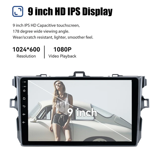 GPS Carplay 64G Android 13 Car Stereo Radio Navi FM For TOYOTA COROLLA 2009-2013. MIRROR LINK & APPLE CARPLAY & ANDROID AUTO : With this car radio, you can experience the amazing Mirror Link function, compatible with iOS and Android phones. Replace your cell phone with the car screen and turn your vehicle into a smart platform. Description Features: 9 Inch Android 13 Car Radio For Toyota Corolla 2008-2013 : The Android car radio with 9″ 1024*600 HD IPS capacitive touch screen, 2GB RAM and 64GB ROM allows you to download your favorite apps and videos, so that driving will never be boring .No additional frame, no cable change, plug and play. NOTE: Hybrid, SE and model with JBL sound system need a canbus decoder & special cable(not included). Please check compatibility before purchasing. MIRROR LINK & APPLE CARPLAY & ANDROID AUTO : With this car radio, you can experience the amazing Mirror Link function, compatible with iOS and Android phones. You can mirror your smartphone screen to the car radio using apps like Google Maps, Spotify, Youtube, etc. Replace your cell phone with the car screen and turn your vehicle into a smart platform. Immerse yourself in a seamless and user-friendly infotainment experience with Apple CarPlay & Android Auto. Connect your iPhone to Apple CarPlay or your Android smartphone to Android Auto and securely access calls, texts, navigation, music and more. With intuitive operation via the touchscreen or voice control, you have all functions at your fingertips while you remain safely at the wheel. Use your favorite apps and stay connected at all times while keeping your eyes on the road. Turn your vehicle into an extended hub for your mobile devices and experience a new dimension in infotainment. Navigation System & WiFi : Support WiFi connection. After connecting the WiFi, you can download any APP from App Store, e.g. B. Youtube, Tik Tok, Spotify, etc. Car stereo with GPS, accurate positioning, stable signal, support using online or offline maps, no longer worry about getting lost when you are driving. Independent antenna ensures strong WiFi reception. RDS/FM Radio & Bluetooth & DSP/HIFI Sound : Supports Bluetooth 4.0, with built-in microphone and speaker so you can make hands-free calls while driving. Support access to phone book, music playback interface, etc. Support RDS. You can store 18 FM radio stations. Supports 36-band EQ adjustment, which can be adjusted according to your personal preference. Multimedia player supports Hi-Fi function, high-fidelity, reproduced sound very similar to your original sound. 4 x 45W amplifier, surround sound and subwoofer output. AHD Rear View Camera Input & Steering Wheel Control : After connecting to the rear view camera. The radio automatically displays the reversing image as soon as you engage reverse gear. Make your daily reversing safer. Support AHD camera. Support original car steering wheel control to make driving more convenient and safer Technical specifications: System: Android 13 Screen: 1024×600 IPS capacitive touch screen, 178° viewing angle CPU: 4x Cortex-A53 1.3GHZ Memory: 2 GB (RAM) + 64 GB (ROM) Radio band: FM Radio frequency: FM 87.5M-108M Radio Data System (RDS ): RT, AF, TA provides all the FM channel information you need. Mosfet output stage: 4 x 45 watts for maximum power Bluetooth: 4.1 Audioformat: MP3, FLAC, APE, WMA, WAV, AAC, AMR Videoformat: AVI, ASF, MP4, MOV, MPGMPEG1 / 2/4, VOB, MKV, FLV, TS, WMV, RMVB, 3GP OSD Menu Language: English, German, French, Italian, Spanish, Portuguese, Russian, Turkish, Polish Key Illumination: RED Package List: 1 x Android Car Radio for Corolla 1 x GPS Antenna 2 x USB Cable 1 x Power Cable 1 x RCA Cable 1 x CAM-IN Cable 1 x User Manual Detail Image Warranty Return policy Products with quality problems within 30 days can be returned and refunded/replaced (Item in resalable condition) Products with quality problems in 1 year can be returned and repaired. (For more details, please read our warranty policy). Welcome back to our shop Customer satisfaction is our top priority.