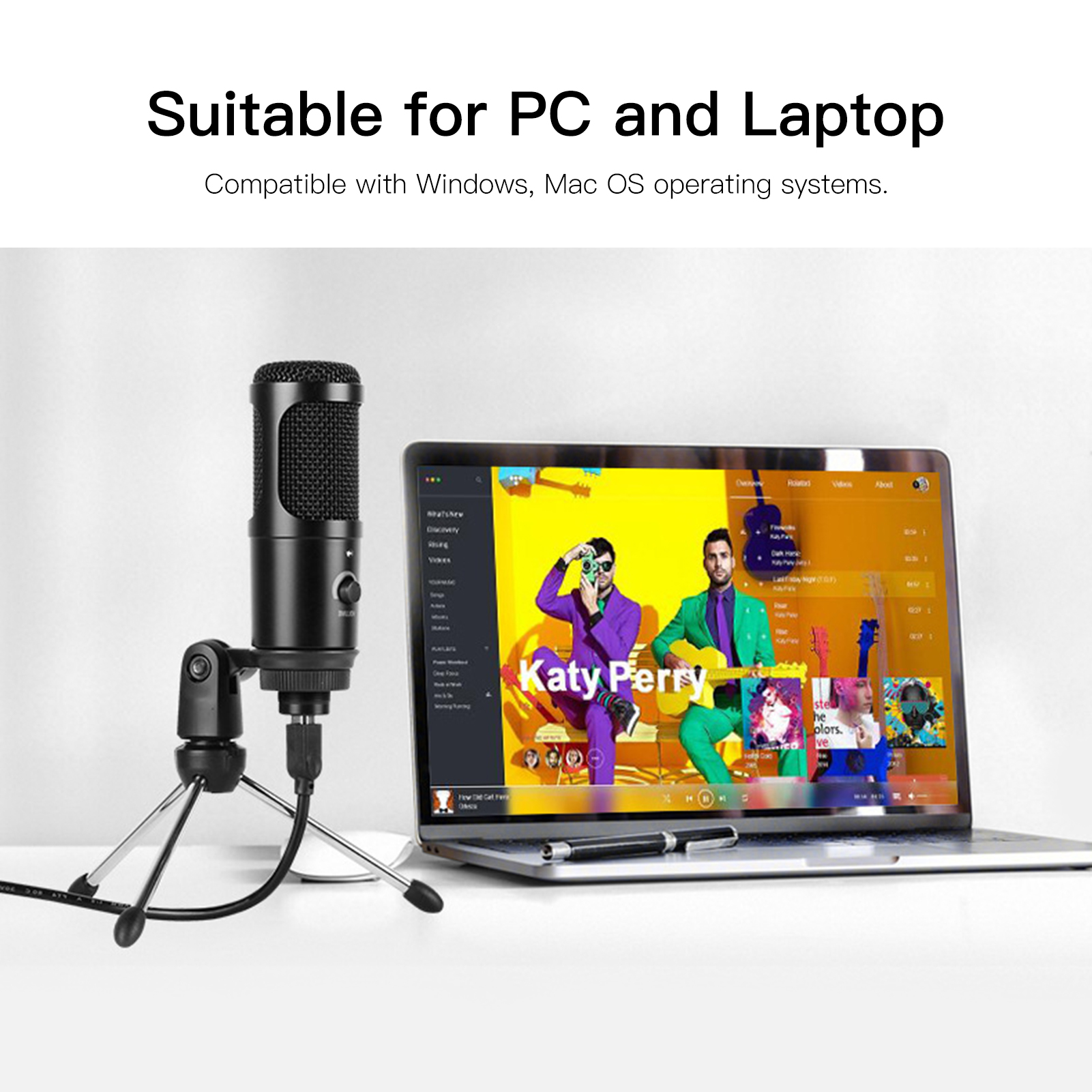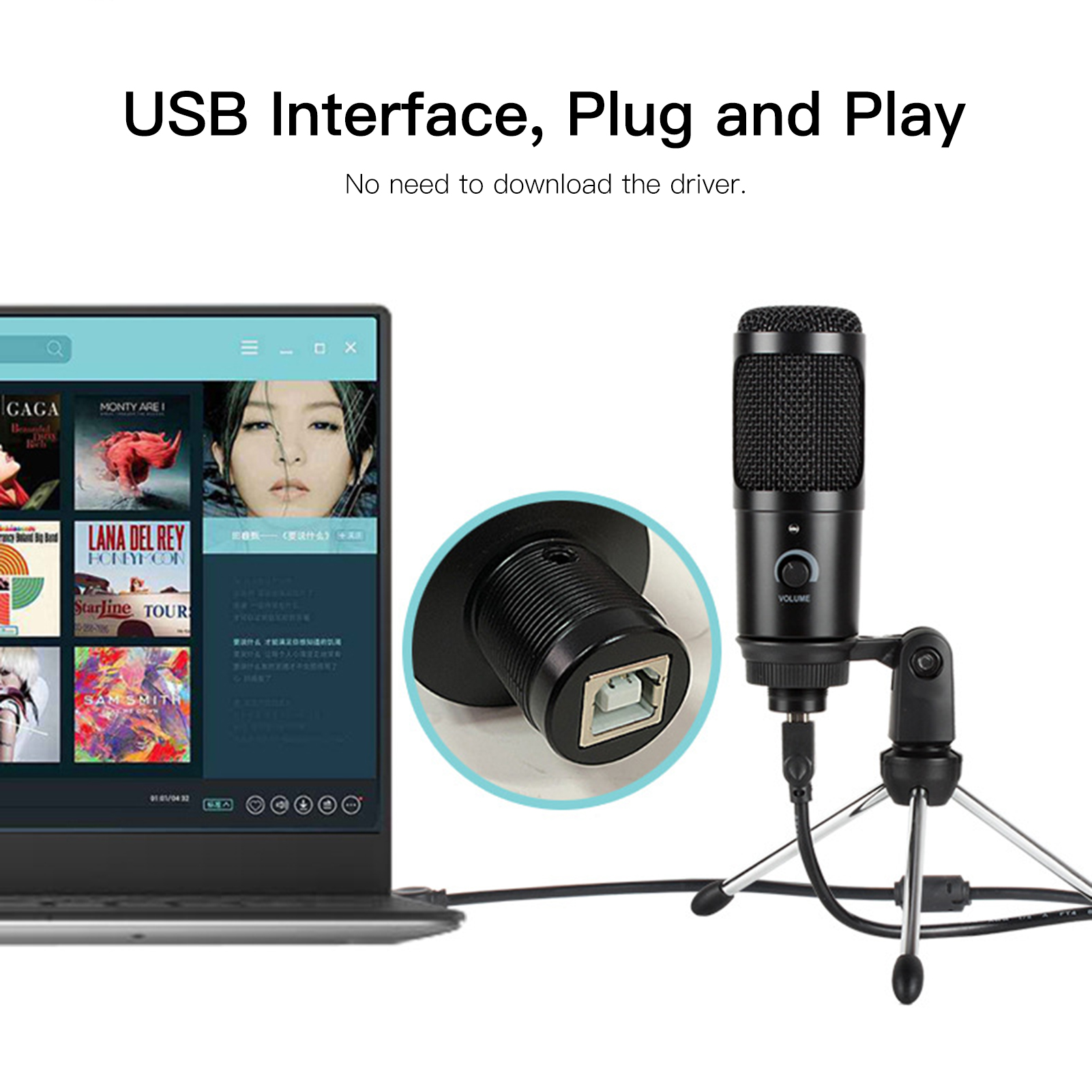 Features:High sensitive condenser microphone, it can provide full and natural sound. Cardioid pointing, accurate pickup sound, active noise reduction, clear sound quality. The sound can be adjusted by knob.Windproof cotton, which can effectively filter out wind andnoise, and make your voice more perfect. Comes with foldable tripod, easy adjustment of microphone angle, firm and stable use.USB interface, plug and play, no need to download the driver, suitable for PC and laptop, no setting, no additional power supply. Compatible with Windows, Mac OS operating systems.Perfect for various situations, suitable for personal computer singing recording, video conference, online class, live streaming, gaming, chatting, etc.Note: If you want to connect your smartphone, you need to use a special conversion cable. (The cable is not included.) If you have any questions about the product, please contact us, we will provide you with satisfying service.Specifications:Model: K1Color: BlackMaterial: MetalDirectivity: Cardioid PointingFrequency Response: 30HZ-18KHKZSensitivity: -34dB±2dBVolume Adjustment: Adjust the volume by knobPower Supply Mode: USB 5V Power SupplyCable: USB Audio Data Cable 1.5mMicrophone Height: 13.5cmMicrophone Diameter: 4.3cmItem Weight: 175g / 6.2ozPackage Size: 21 * 14.5 * 6cm / 8.3 * 5.7 * 2.4inPackage Weight: 450g / 15.9ozPacking List:1 * Microphone1 * Windproof Cotton1 * Tripod1 * USB Cable