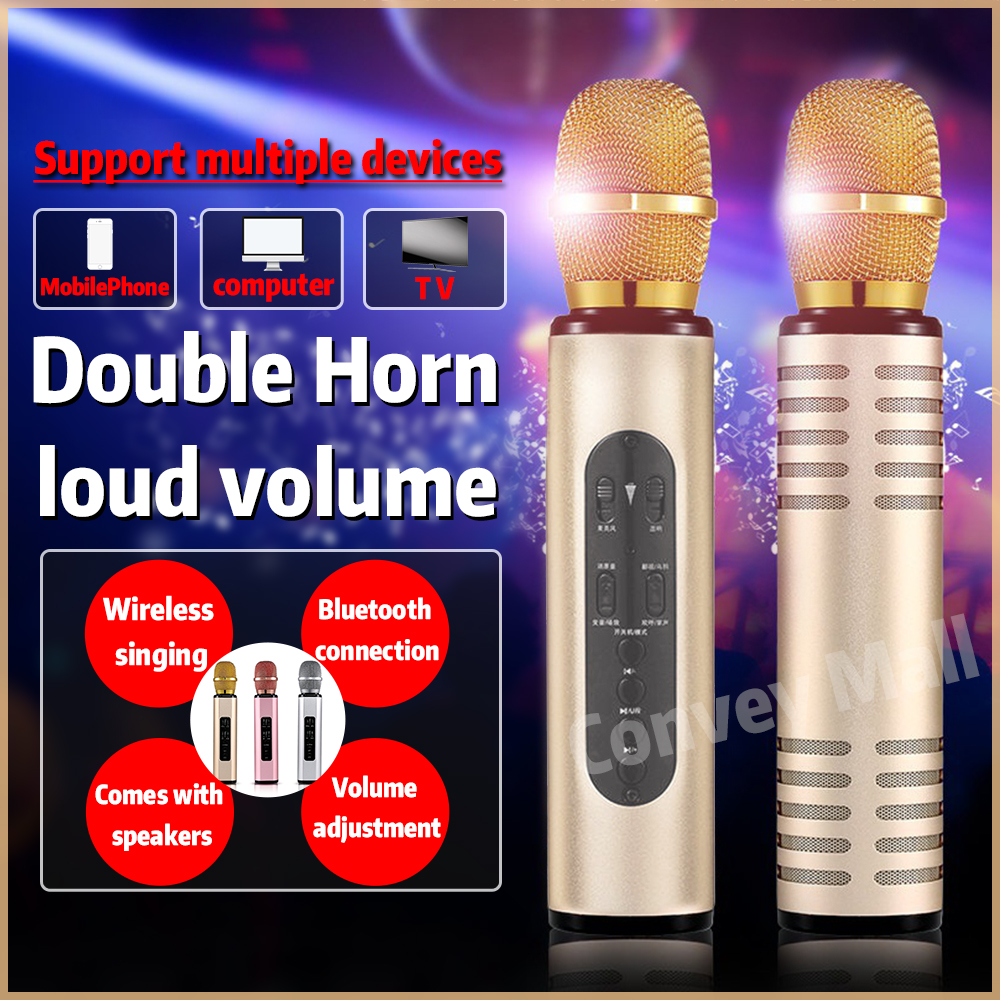 [Local Seller]K6 bluetooth handheld microphone karaoke OKKTV HiFi speaker driving ring dual speaker microphone singing and recording wireless Mic