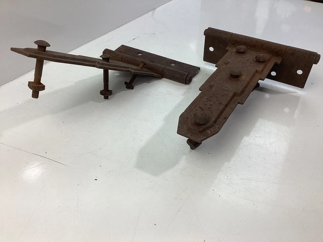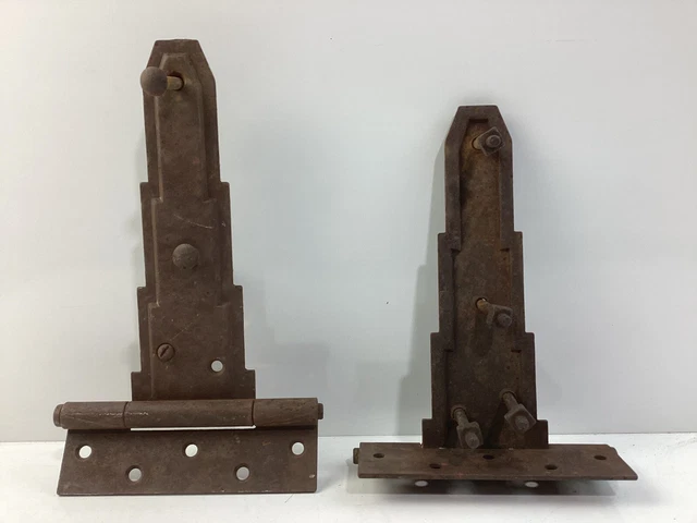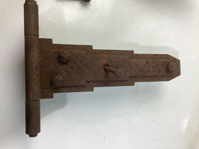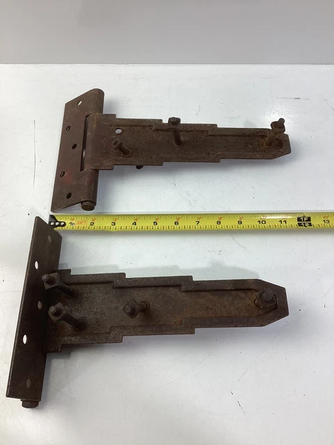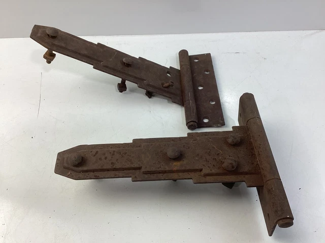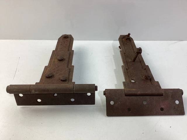 Vintage Barn Door Hinges, Set of 2. Add a touch of vintage charm to your home with this set of two barn door hinges. Crafted with high-quality materials, these hinges are perfect for those who appreciate the beauty of antiques. Designed specifically for barn doors, they are a great addition to any home decor. The hinges are easy to install and come with all the necessary hardware, making it easy to get your hands on this vintage piece. Perfect for those who love to collect unique items, these hinges are a great conversation starter. Give your home a timeless look with these vintage barn door hinges. Measurements 12” x 7” Hinges are rusted in place, as shown in pictures. Shelf 5 Row 3 JP Add a touch of vintage charm to your home with this set of two barn door hinges. Crafted with high-quality materials, these hinges are perfect for those who appreciate the beauty of antiques. Designed specifically for barn doors, they are a great addition to any home decor. The hinges are easy to install and come with all the necessary hardware, making it easy to get your hands on this vintage piece. Perfect for those who love to collect unique items, these hinges are a great conversation starter. Give your home a timeless look with these vintage barn door hinges. Measurements 12” x 7” Hinges are rusted in place, as shown in pictures. Shelf 5 Row 3 JP