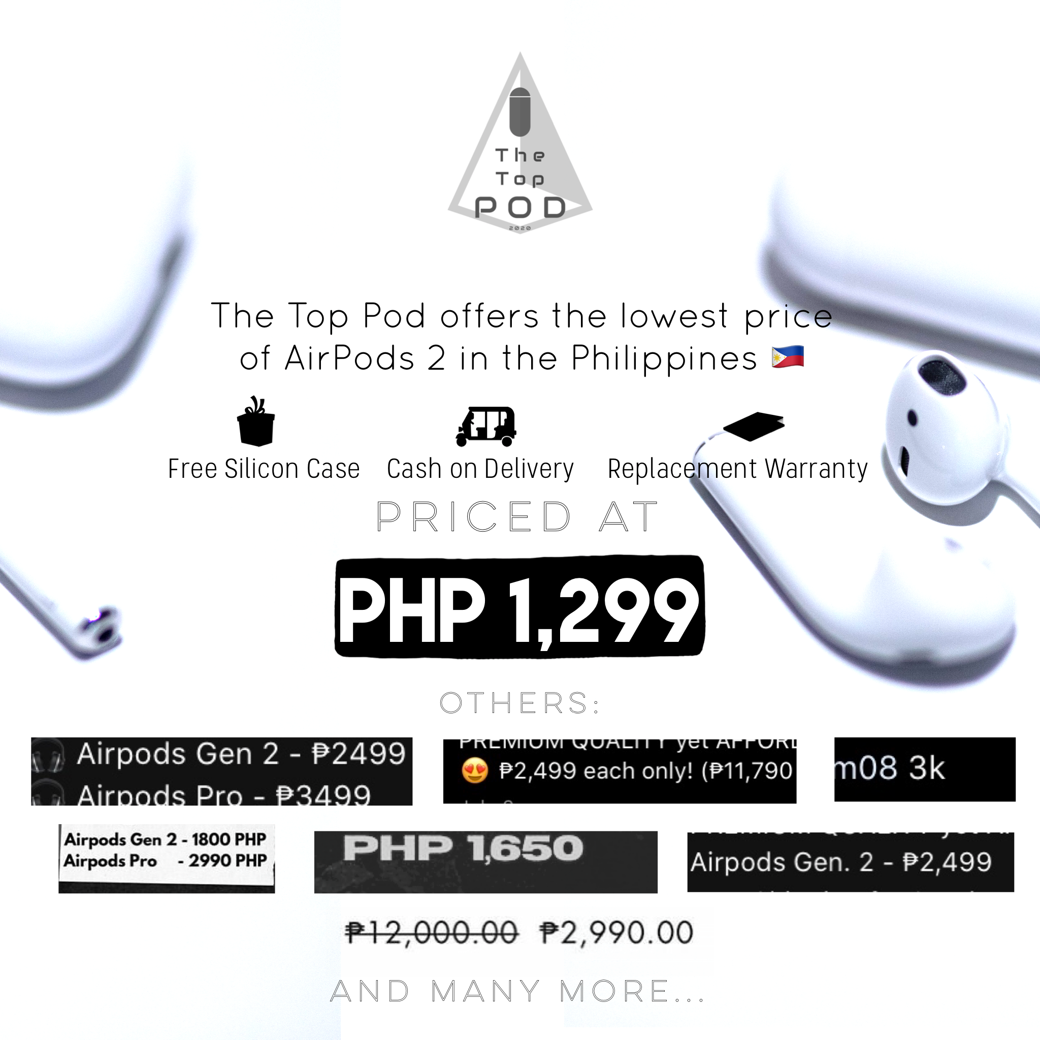 The Top Pod TWS Air Pods 2 with Wireless Charging Case (Airoha 1536 u) Best Bluetooth Earphone With Mic for Android and iOS with Searchable Serial Number with FREE Silicone Case