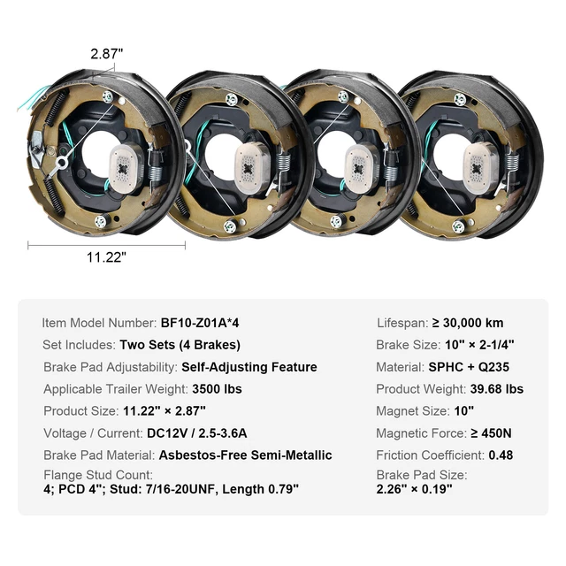 VEVOR ELECTRIC TRAILER Brake 10″x2-1/4″ Self-Adjusting Assembly 2 Pairs 3500 lbs