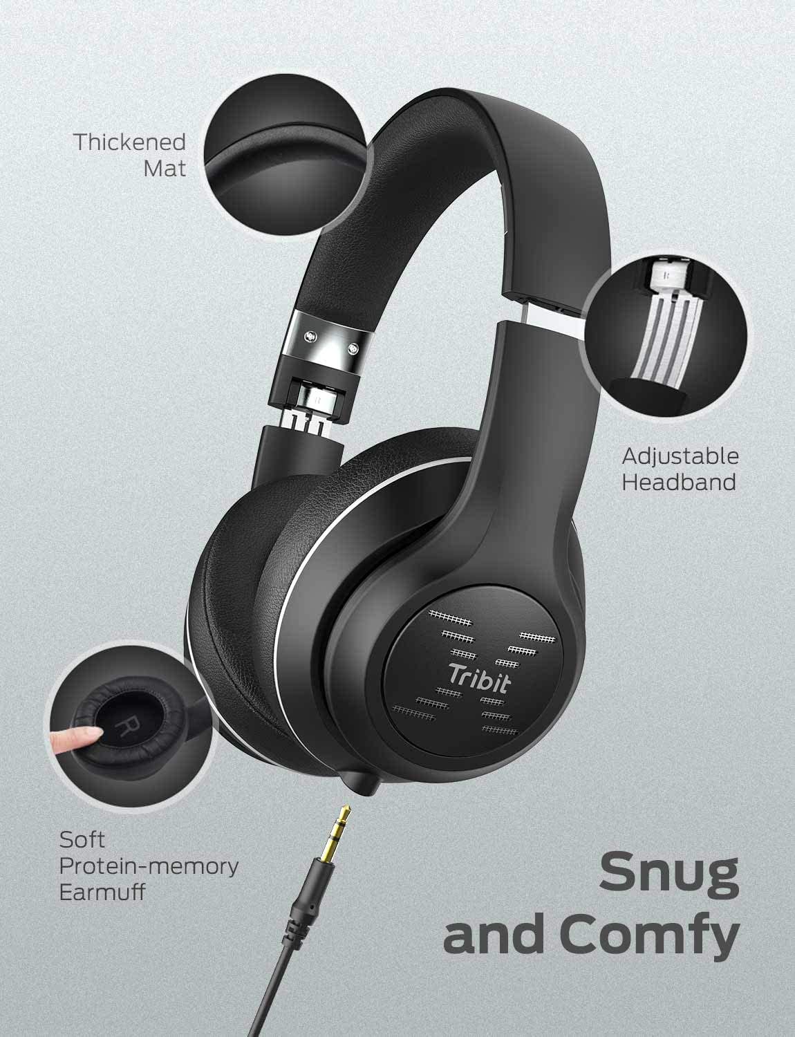 Tribit XFree Tune Bluetooth Headphones [40h Playtime] Bluetooth Headphones over Ear with Hi-Fi Stereo Sound & Rich Bass Cnets Award Comfortable Headphones with Microphone & Foldable
