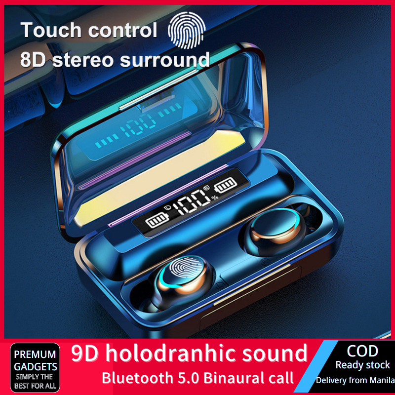 TWS Wireless Bluetooth Earphone Headset Earbuds Wireless Waterproof Earpods Original Airpods for Android with Microphone1. Upgrade LED power display:Intuitive to know the electricity level ,Charging cabin and the headset at a glance2. F9-8 chip upgrade: Upgrade the 5.0 Bluetoothchip, pick up the automatic boot and matching3. Operational function upgrade:One touch toswitch previous/next song & volume adjustment wake up assistant4 . Large capacity charging cabin : Can be used for earphone storage box Charging for earphone/ mobile phone As a mobile phone holder5.Enjoy & 9D heavy bass : Enjoy the HIFI sceneand enioy the immersive 9D stereo surroundsound effect6.CVC80 intelligent noise reduction:Enjoy HD call effects without being affected by noisy environment7. Strong compatibility: Regardless of the brandmobile phone and model, Bluetooth-enabled devices can use this headset